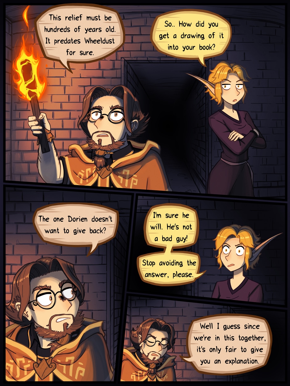 Tales from the great capital city named Wheeldust set in a medieval fantasy world dominated by three major races. We will follow the lives of some of its citizens and people living in it's outskirts. So far, we get to know Karoleena a young maid working at a bathhouse, Bree a bounty hunter, Myrell a lonely bartender, Dorien and Lynnda who study magic, their teacher Master Torja and a loner with his donkey named Soren. How will their destinies intertwine? Who is the mysterious cabbage girl? Will this comic ever end? Stick around and find out!