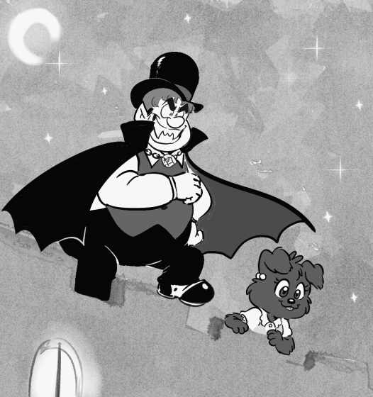 A spooky alt. universe where a vampire Baxter and werewolf puppy Emiko exists? It must be Halloween!