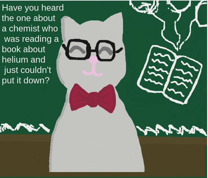 I should have changed this into 2 pictures... Should have put----> Did you hear about the chemist who was reading a book about helium... and then on the the other side I should have put.. I heard it was so good he just couldn't put it down. Idk lol ahhhhh