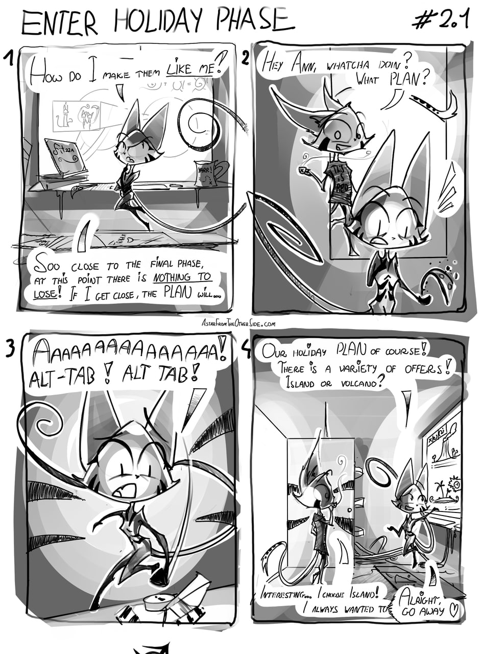 Ann is a kitty from Shy’riath - a hidden planet said to be a utopia. But she’s always been different from her peers which has driven her to learn the dark truth behind her origins and her planet’s wellbeing. Being alone, Ann came up with a Master Plan of romance, manipulation and deceit to fix her world for good. First and the hardest step is to find and bring her only potential allies from the Other Side - the inside of a black hole. What could possibly go wrong.