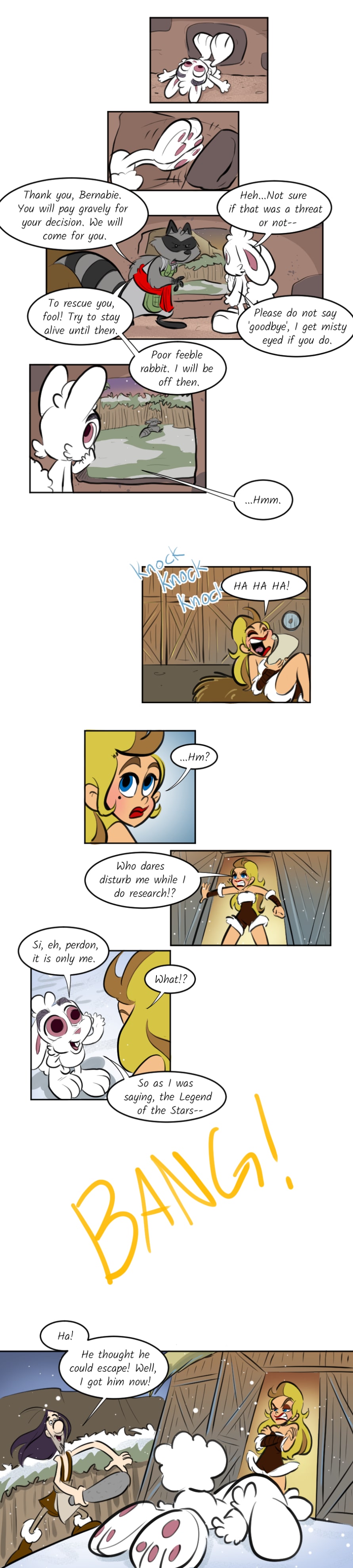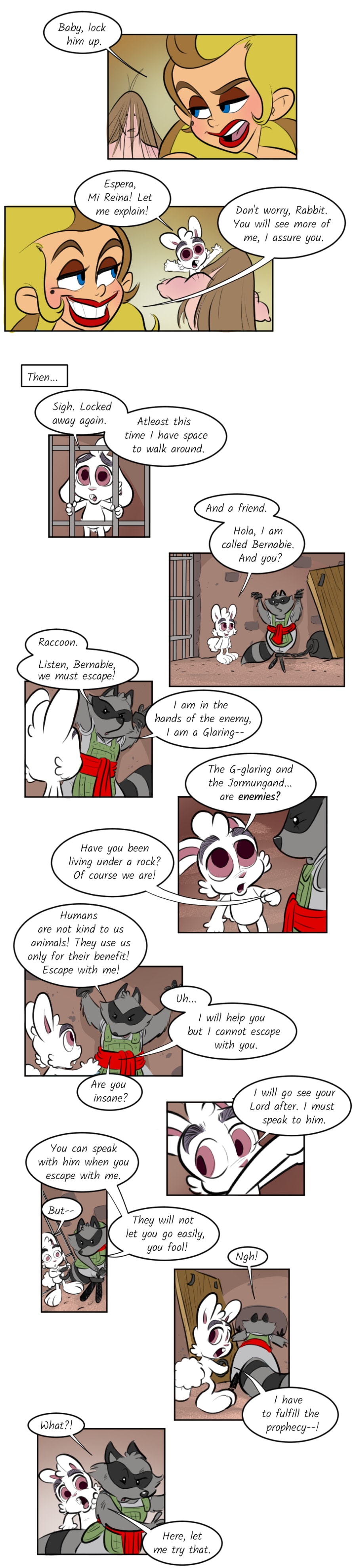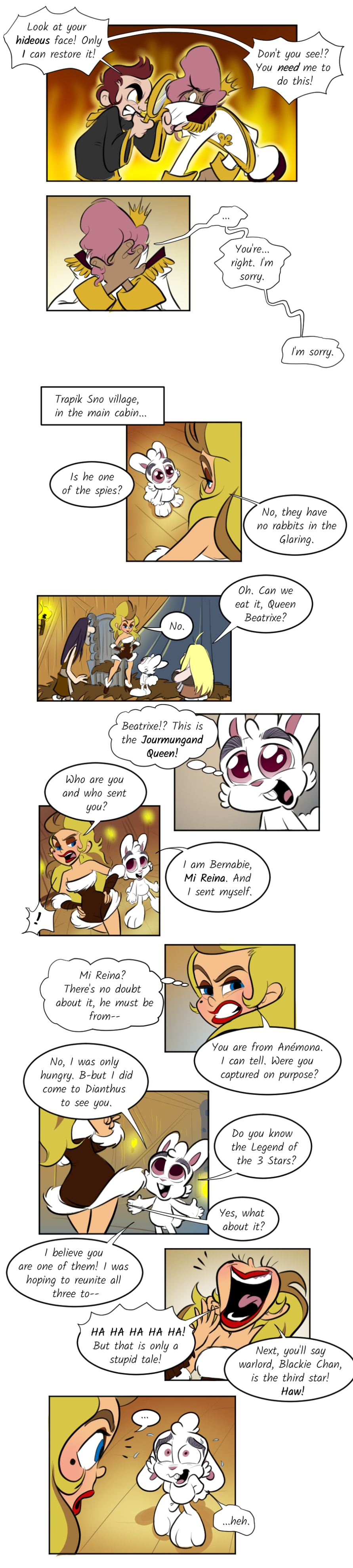 Bernabie the rabbit faithfully believes Prince Edwìn of Anémona, a kingdom of lucky rabbits, is a hero of a legendary myth that is said to one day bring peace to many lands. But the prince has gone through a troubling change with the help of the royal wizard, Sebastian bringing chaos to the once fairytale land! Bernabie escapes and seeks out two rival leaders, believing that they could also be the other heroes from the legend-- Fearless Queen Beatrixe of the Jormungand Kin and warlord, Blackie Chan of the Glaring Clan.