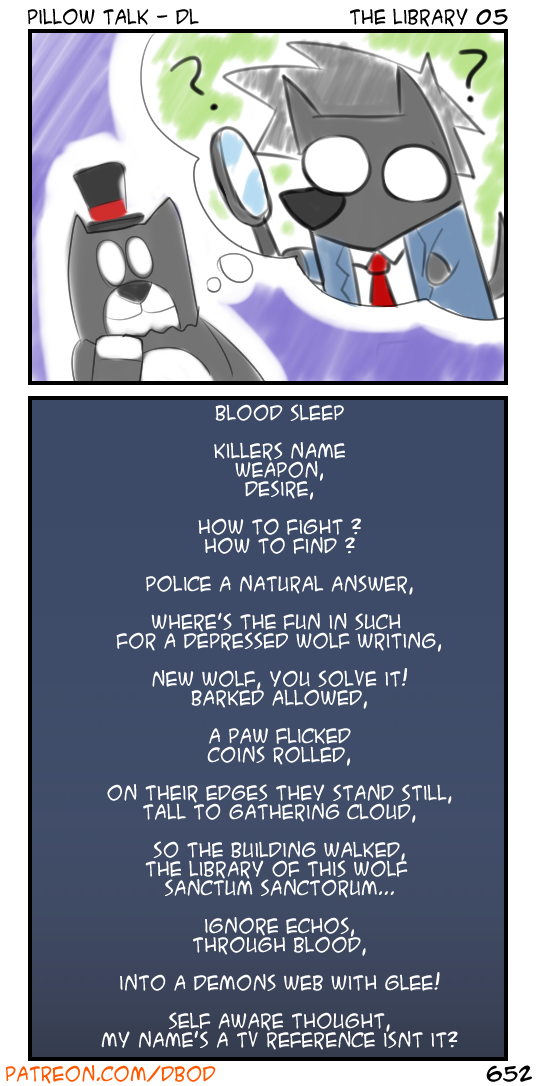 Find the clues little wolf! Go support the wolfo at: http://tapas.io/series/Dark-Library- Please check out our patreon at http://www.patreon.com/dbod and our ko-fi at http://ko-fi.com/dinobird