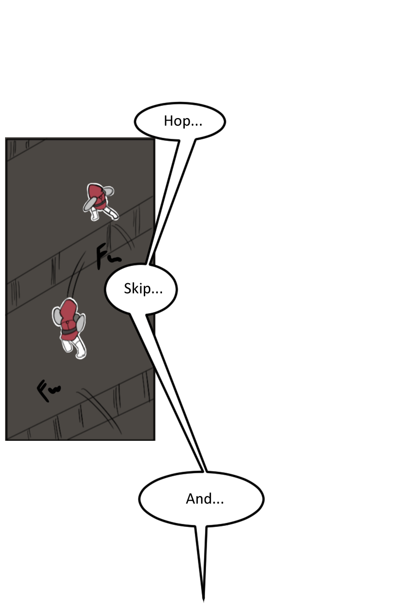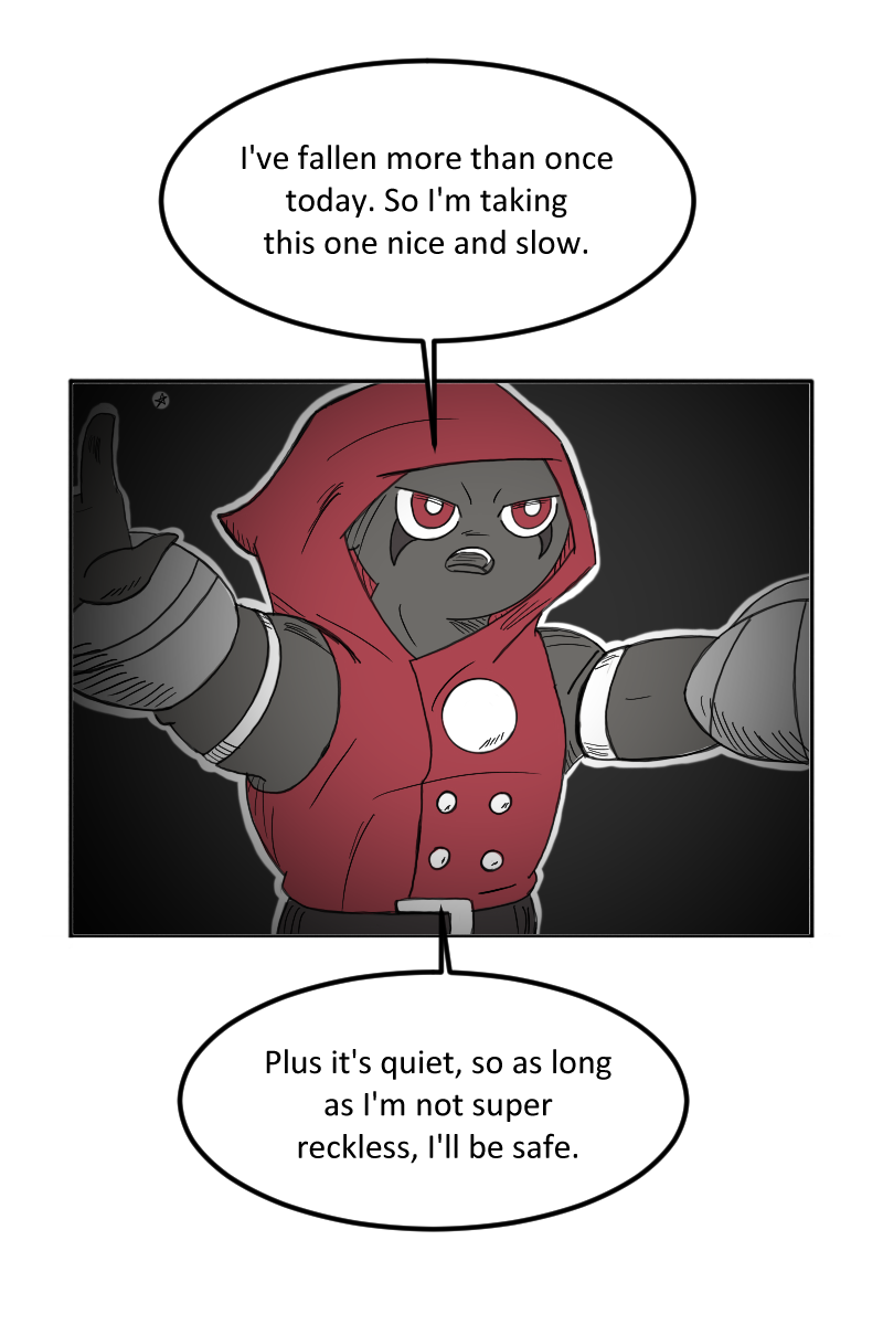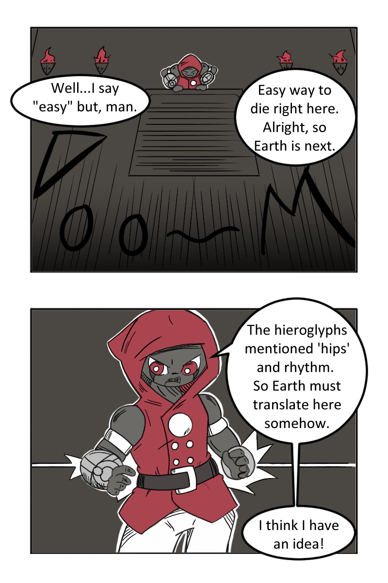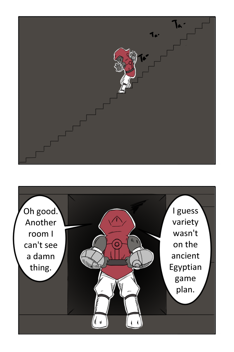 This is awesome! Feels like a 3rd person action adventure, the layout and illustrations keep me feeling like danger may lurk ahead (boobytraps etc). Love his expressions and humor too! Keep it up!