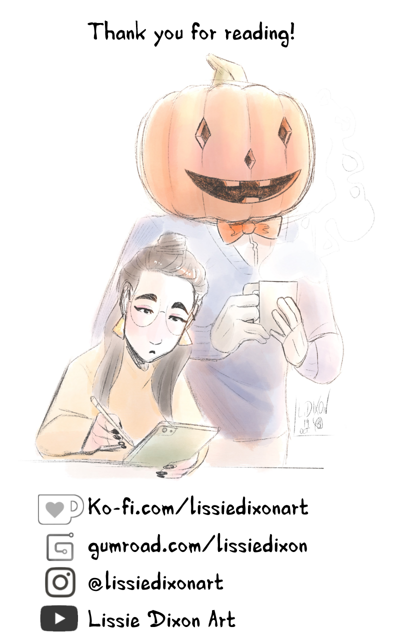 So I'll be touching on this more next week, BUT! 1. Still collecting (non-spoiler) questions for the Q&A, and 2. I need your help! I'm trying get the series to qualify for the ad program on Webtoons--the last requirement needed is 40,000 US page views in a month, and we're halfway there for October! If you could, please share the series! This will enable me to keep doing weekly updates--possibly all year long! <3 Thank you!