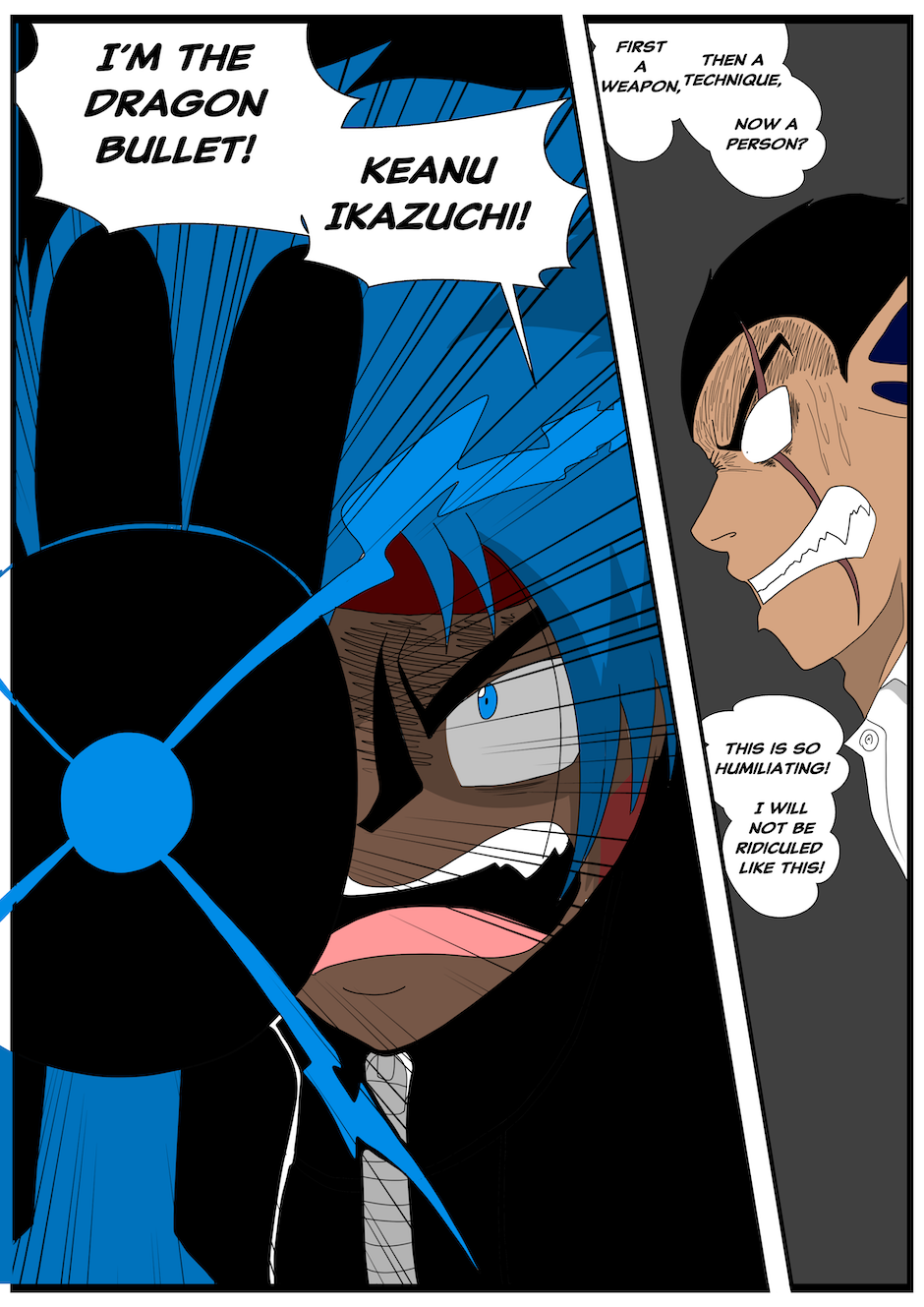 Beliving Keanu to be in possession of a weapon called the Dragon Bullet, Hyeon challenges him.