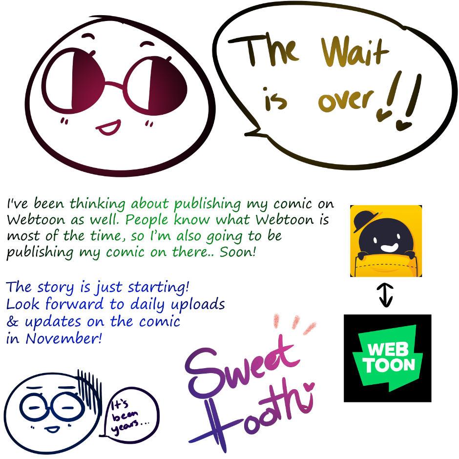 Sorry! Things were postponed due to school and personal reasons. A few pages are done already! Things are being set up on WEBTOON! stay tuned! :}
