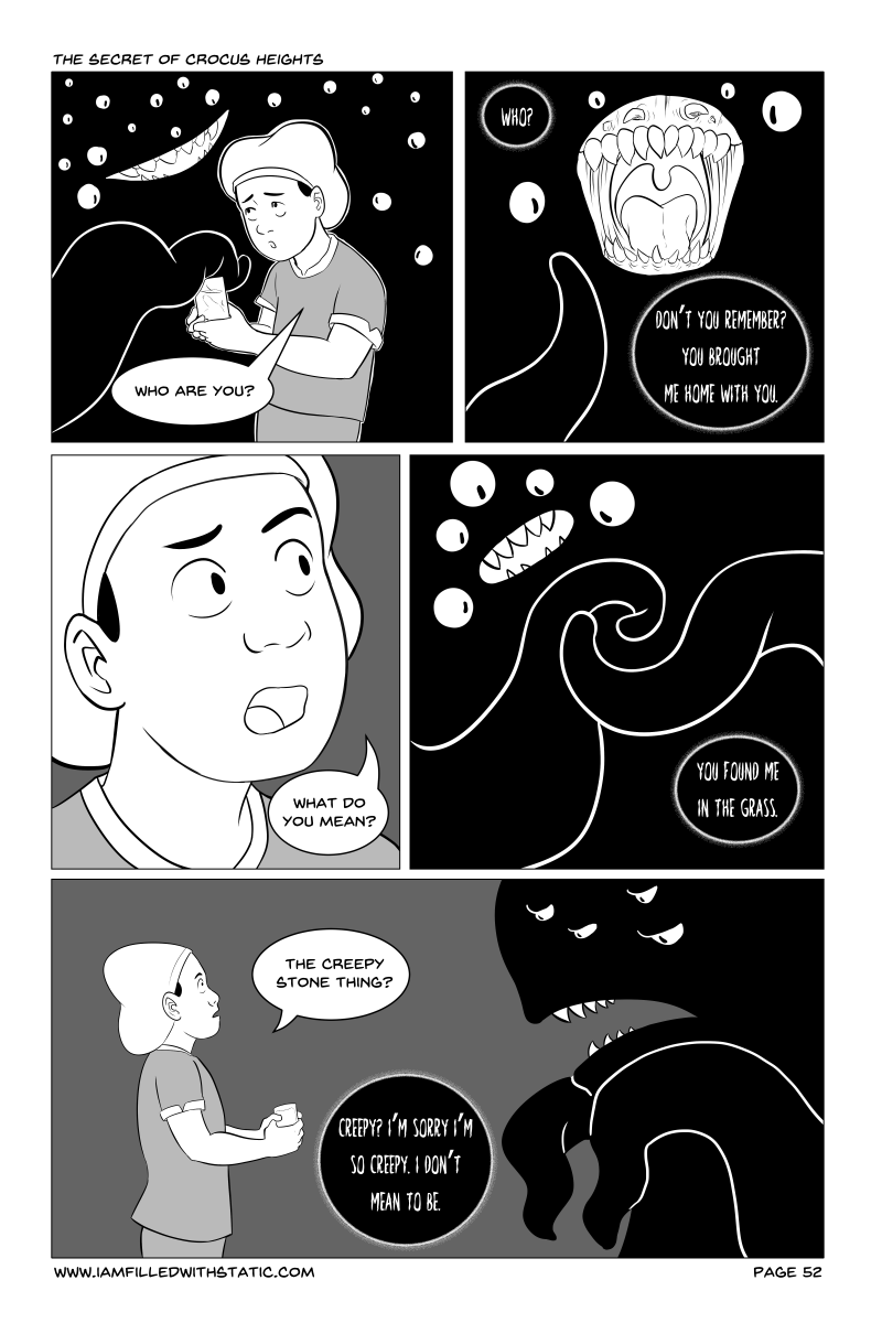 "The Secret of Crocus Heights" will guide you through the daily lives of some upstanding members of the community of Crocus Heights, and drag you through the horrifying mess that unfolds. Follow the paths of several characters dealing with quickly worsening circumstances brought on when Alayna finds an ominous curio while playing in the woods.