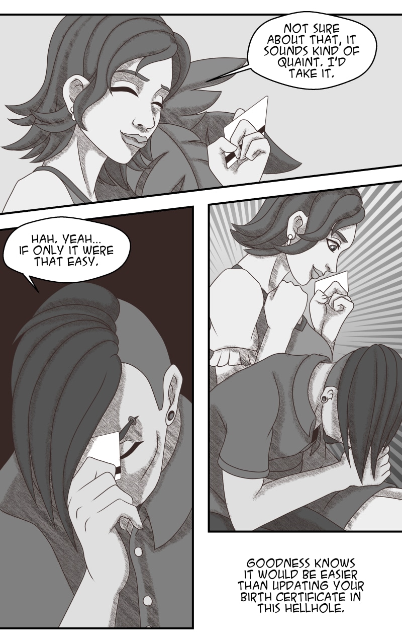 Two young adults find themselves at an impasse in their transition efforts, unable to change their documents to reflect their gender. Instead of giving in to the system, they chose to trade names and lives in order to exist as their true gender. A slice of life romance story exploring gender, sexuality and awareness of what people gain and lose as they grow.