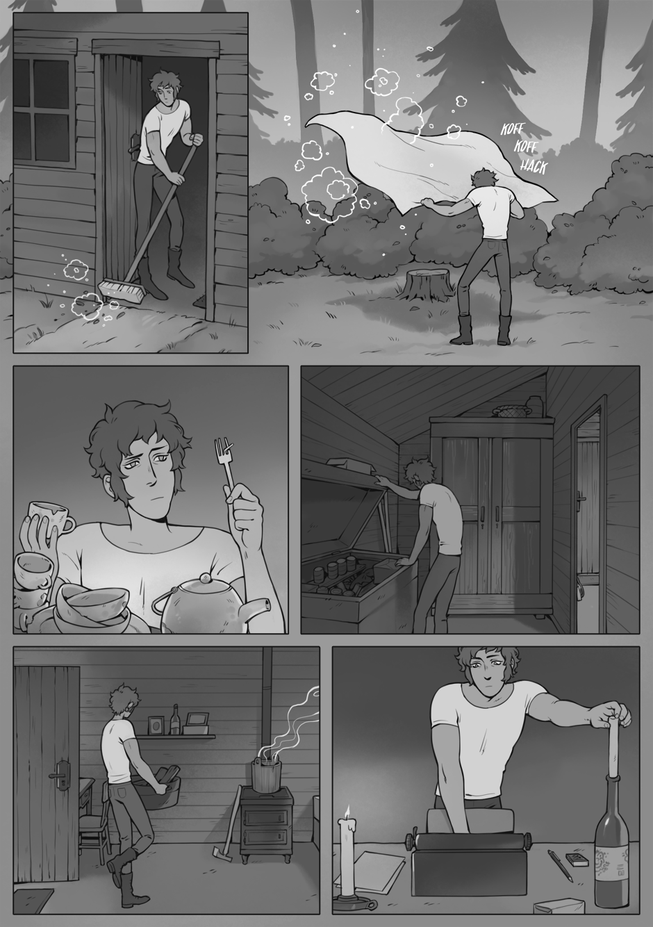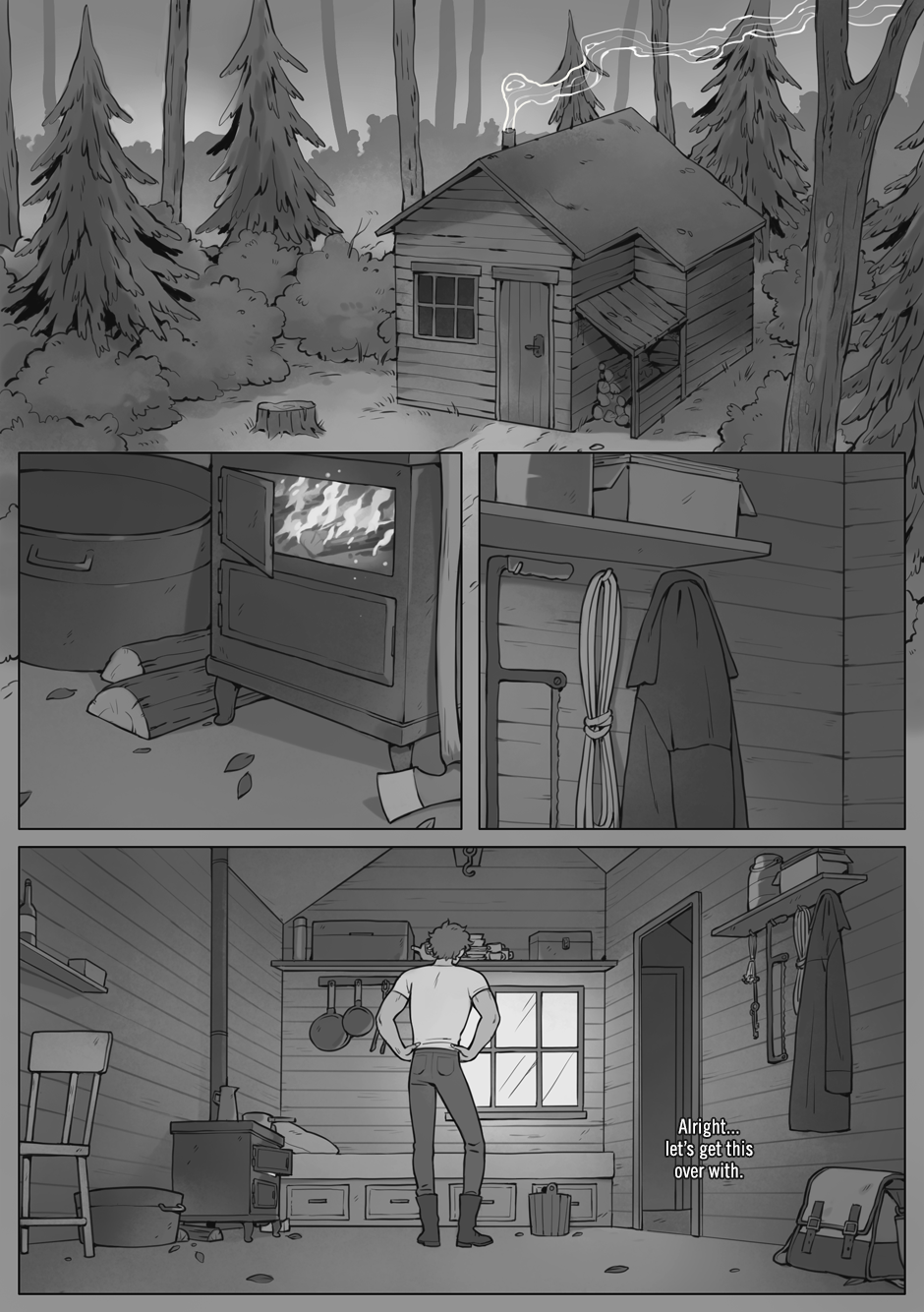 That's right, after a long hiatus... we're finally back with a new episode! Henry's settling into his temporary new life, while I settle back into making greyscale pages. How fitting.