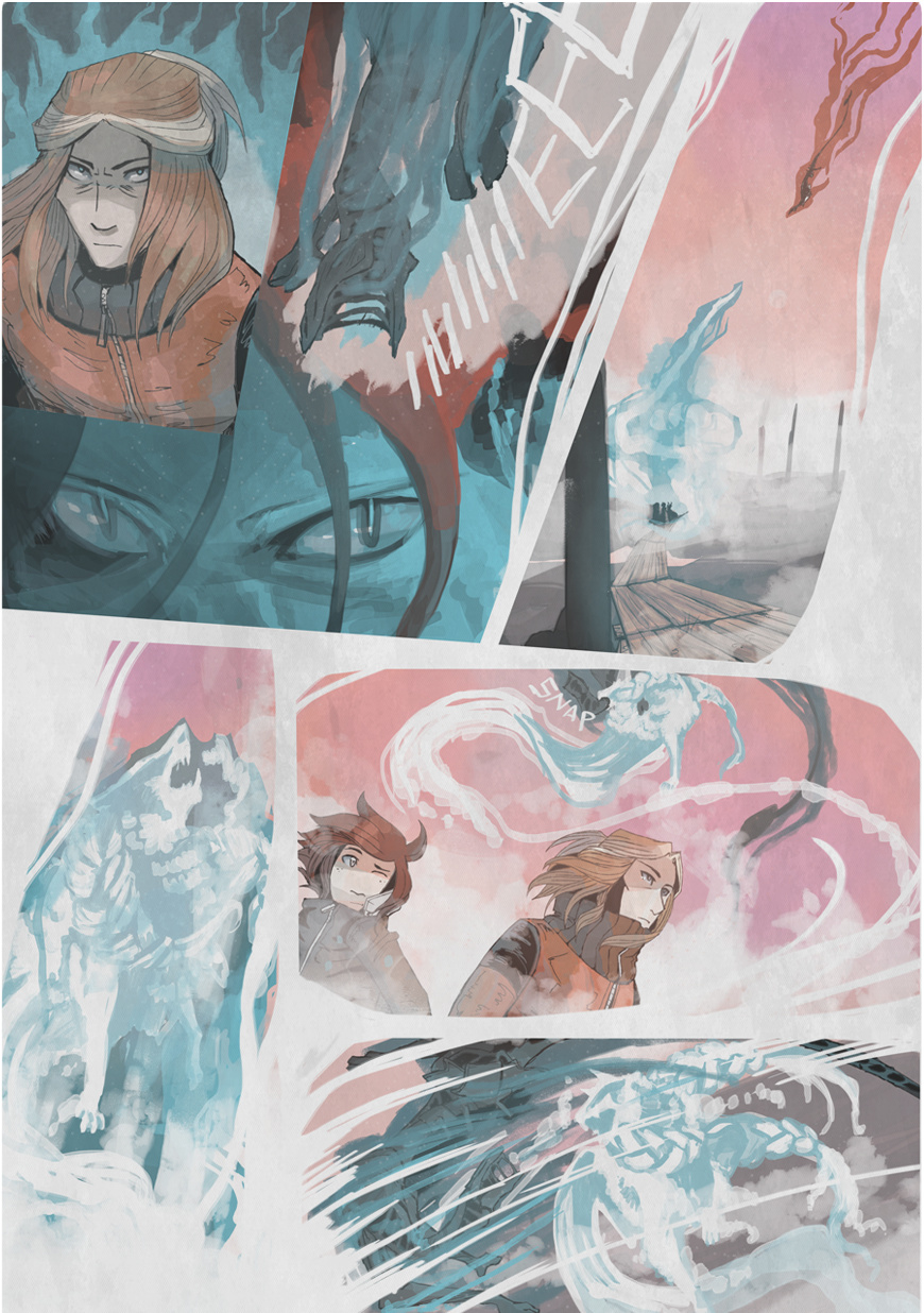 That's what Veeti was doing earlier, summoning a spirit of his own! Yep, the "evil ones" aren't the only kind there is. And Mika couldn't see, hear or sense any of that. Because he is a normal dumdum!