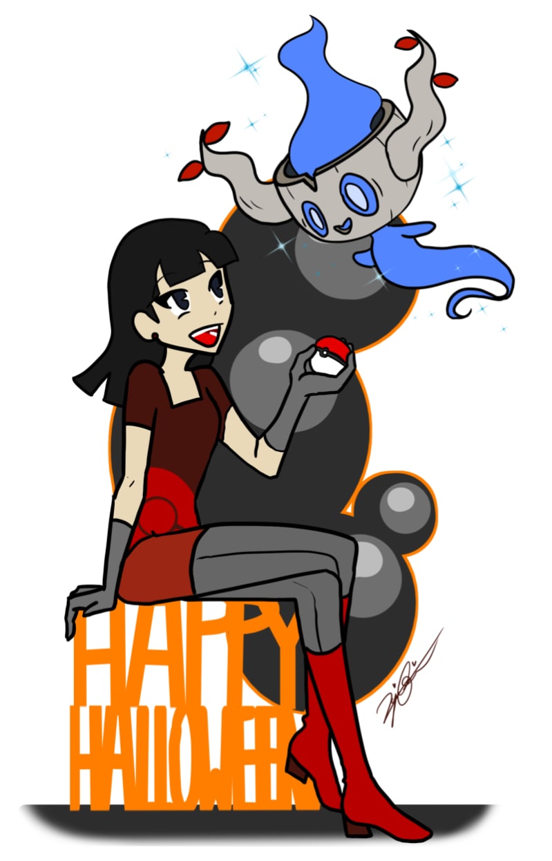 Happy Halloween! It's a day late, I know, and I'm sorry for the long hiatus of Gary's Graduation Test, but I'm slowly (and surely) getting back on that horse and drawing again! I thought I would start by drawing this. Gary went as a shiny Phantump and Kaiko his trainer! Expect a chapter soon!!!