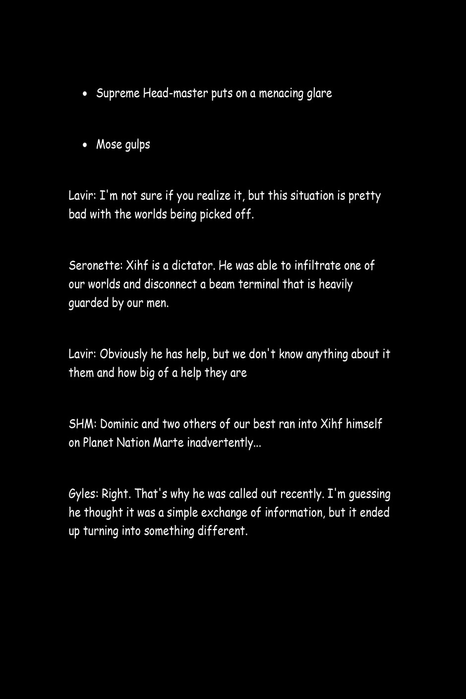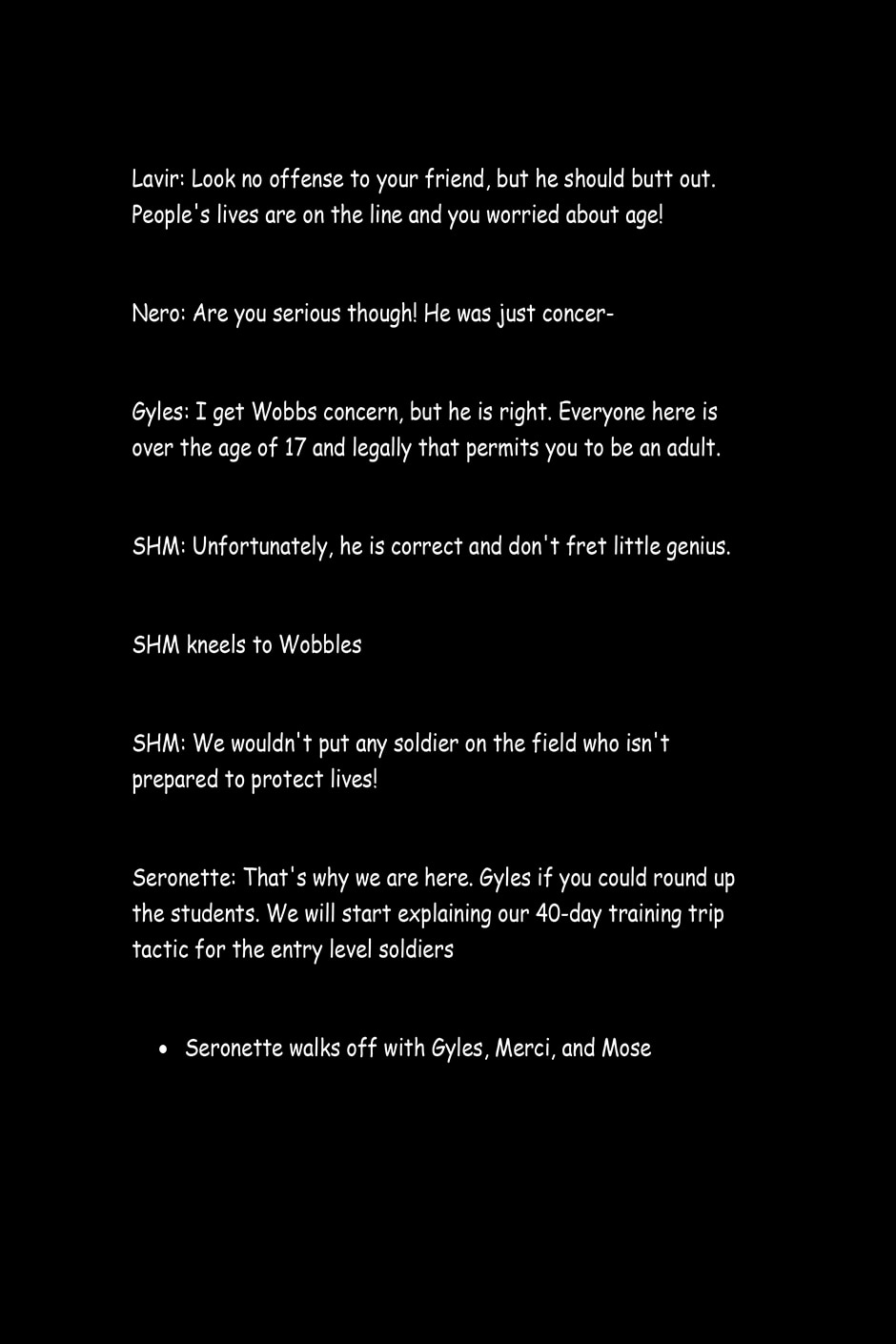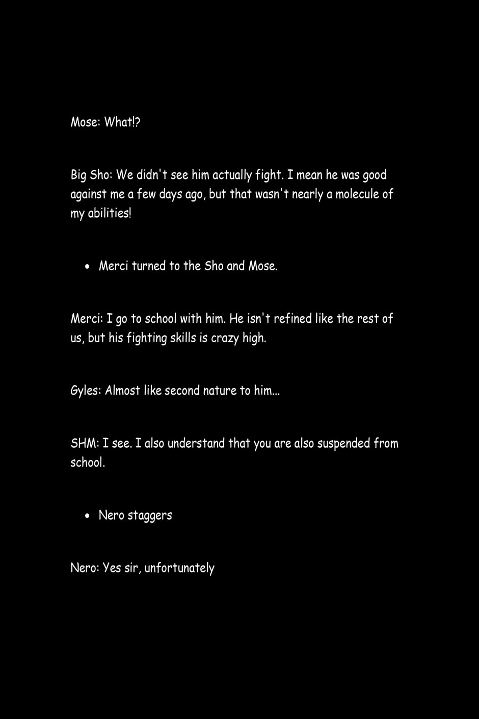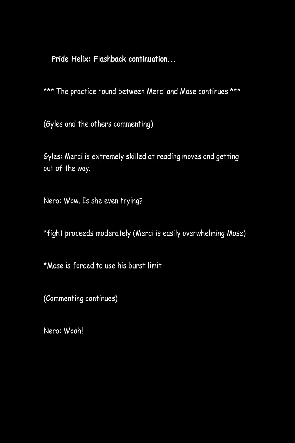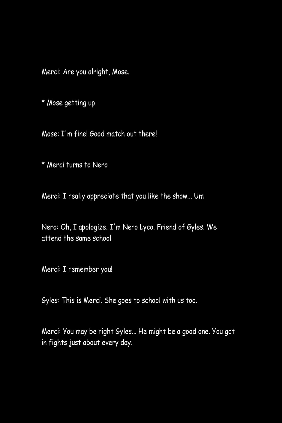 The text entry on what happened after Merci and Mose Fought.