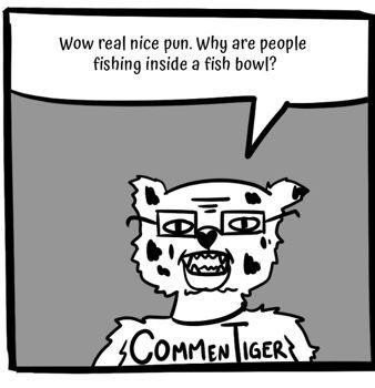 If you have any comments about the comic strips, don't worry, Commentiger appears at the end of each strip to give his opinion - he's pretty harsh.