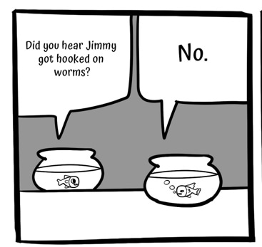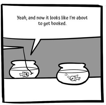 Two fish walk into a bar, and one ends up falling for the bait.