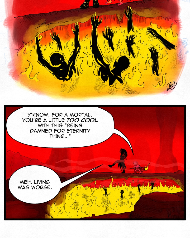 Step into the Third Circle of Hell and witness the zany adventures of Mormoth, the incompetent, cowardly demon! Accompanied by his cynical virgin sacrifice; Myrtle, the road to becoming a successful tormentor may prove to be quite challenging indeed. Will Mormoth grow the minerals to inflict punishment on the eternally damned? Or will he continue to disappoint his family until his father eats him? Whatever happens, it's gonna be a helluva fun time! Updates: Tuesdays and Fridays EST.
