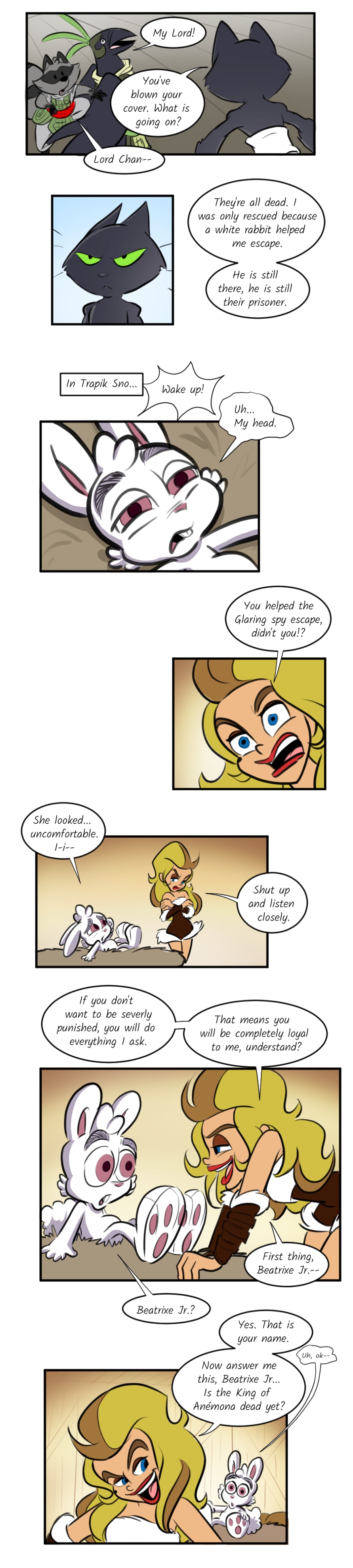 Bernabie the rabbit faithfully believes Prince Edwìn of Anémona, a kingdom of lucky rabbits, is a hero of a legendary myth that is said to one day bring peace to many lands. But the prince has gone through a troubling change with the help of the royal wizard, Sebastian bringing chaos to the once fairytale land! Bernabie escapes and seeks out two rival leaders, believing that they could also be the other heroes from the legend-- Fearless Queen Beatrixe of the Jormungand Kin and warlord, Blackie Chan of the Glaring Clan.