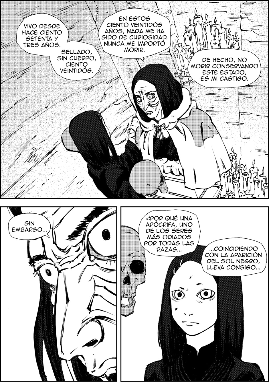 Apócrifa nos relata la historia de un mundo de fantasía medieval en el que tras la aparición del sol negro, varias profecías apocalípticas comienzan a hacerse realidad.