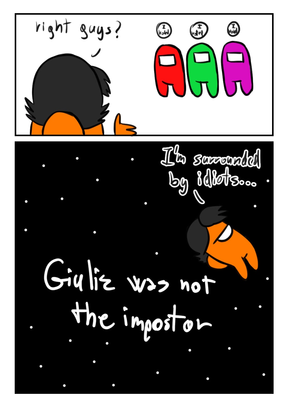 oh god!!! or you could be me, get the other impostor killed and silently kill off everyone else