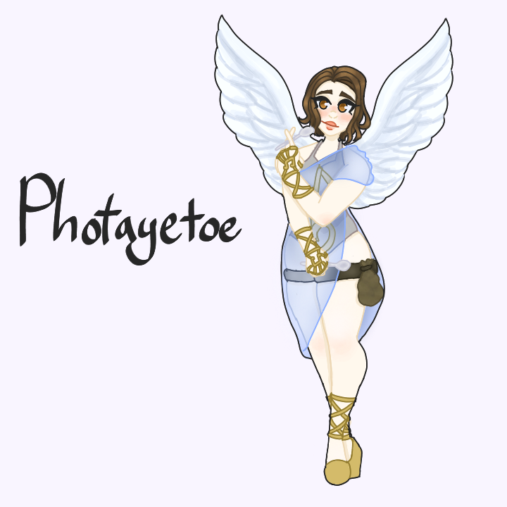 I drew my D&D character, Photaetoe ( Pronounced like potato) She's an aasimar bard who plays the spoons and I love her.