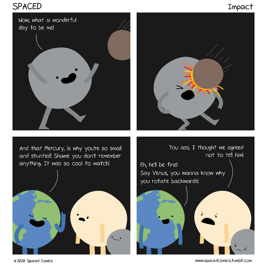 Mercury's got a disproportionately large iron core. We think this is due to an impact with a smaller planetoid that happened billions of years ago, which stripped off most of its mantle. Had this not've happened, it would would be much larger today.