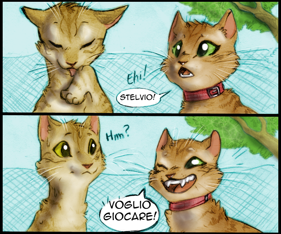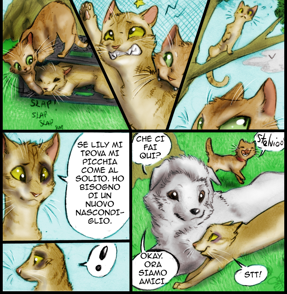 Lily è sempre violenta quando gioca con Stelvio (che, ricordiamolo, è un gatto pacifista!). Fortunatamente c'è Lucha, la nostra cucciolotta di pastore Maremmano Abruzzese: quando il gioco si fa duro, Stelvio può nascondersi dietro di lei!