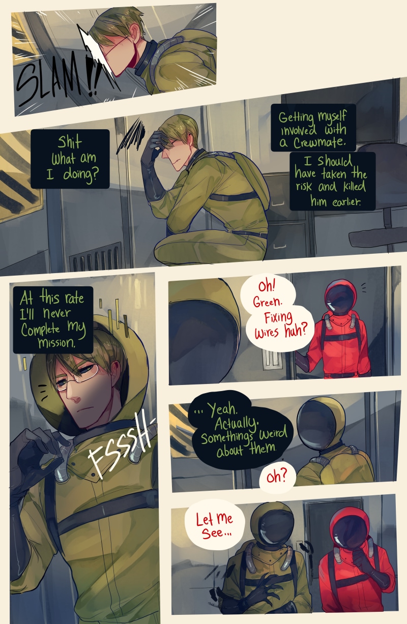 Based on the Among Us game! Stars two different couples. Pink is a crewmate who is a little on the dumb side, as an imposter White should have no issue picking him off. But he finds himself hesitating as the lovable idiot worms his way into his heart.