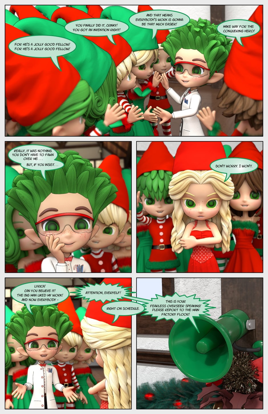 When a well-meaning but bumbling elf invents a presents that when opened magically transforms into the child deepest Christmas wish, it looked like life in the workshop was going to get so much easier for his fellow elves... at least until the conniving workshop manager steals the invention for himself, automates the workshop with robots, and all the elves get Sacked!