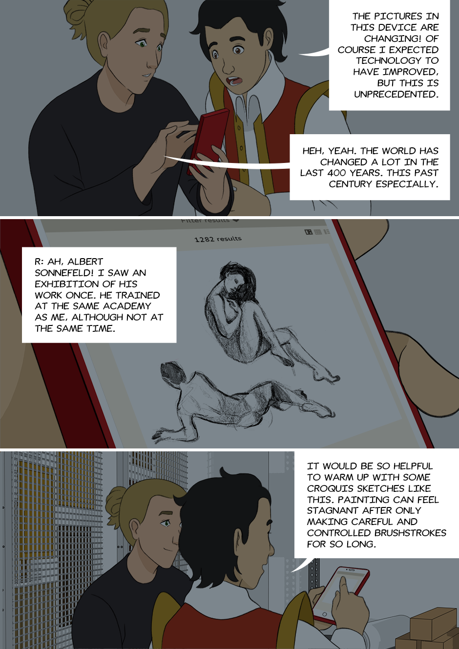 Marking this mature to be safe, since there's some artistic nudity. In other news, I haven't done figure drawing like the ones shown on Landon's phone in ages, it was quite a throwback to uni.