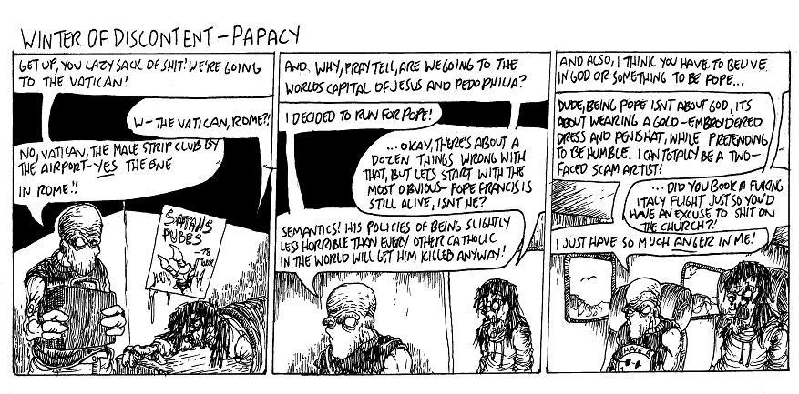 No seriously, Pope Francis has really impressed me with his policies of only being slightly behind on human rights instead of literally sticking with medieval decency laws. Now he just tells people they're going to get sodomized with pitchforks for eternity instead of calling for them to get murdered in this lifetime.