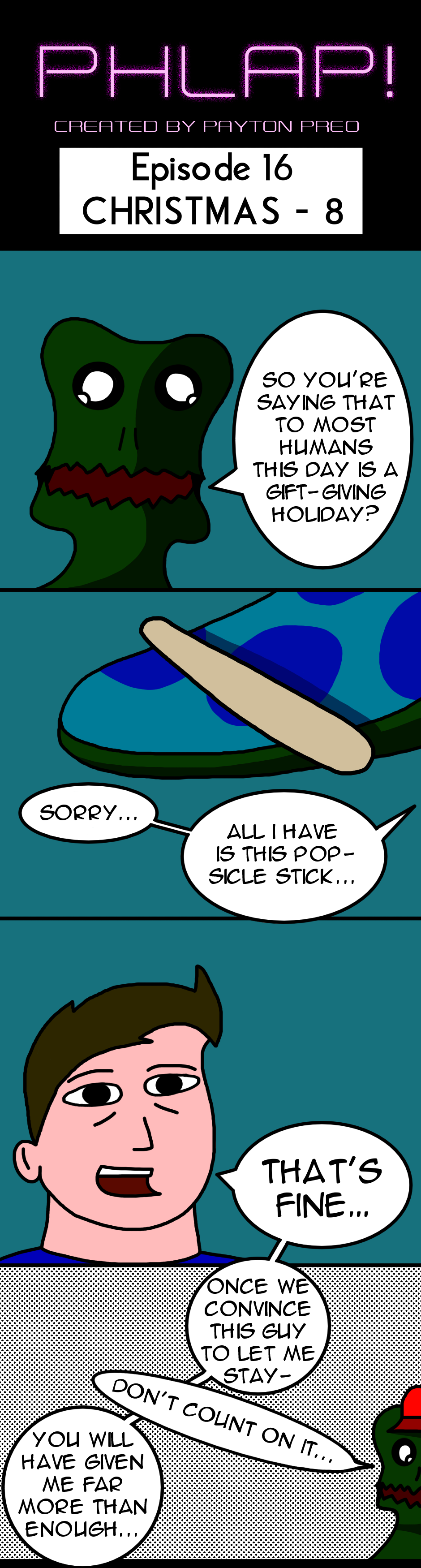"Phlap!" is the story of Fleurp-Phlap, an alien-lifeform searching for a planet to call home. But the journey may lead Fleurp-Phlap to much more than finding asylum...