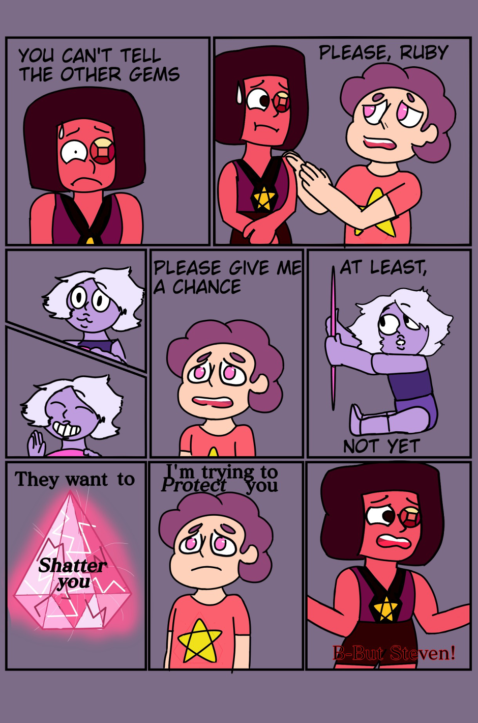 With the loyal and motherly figures of Garnet, Pearl, Jasper, and his dear Ruby they are all stuck in a second, secretive gem war against those who once stood by his mother's side against Homeworld.