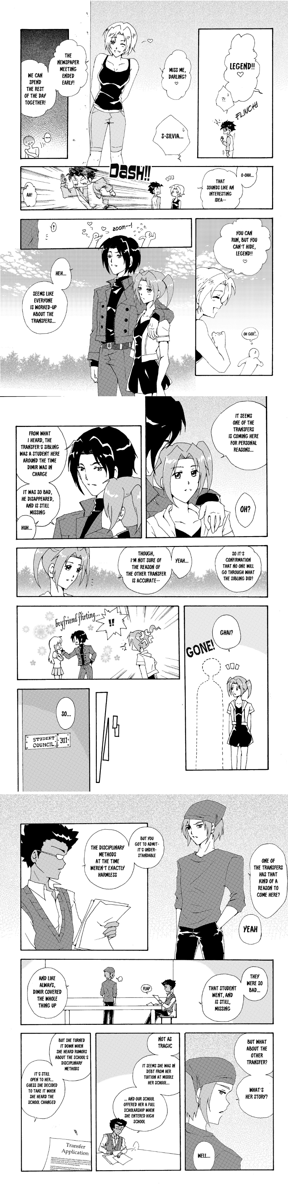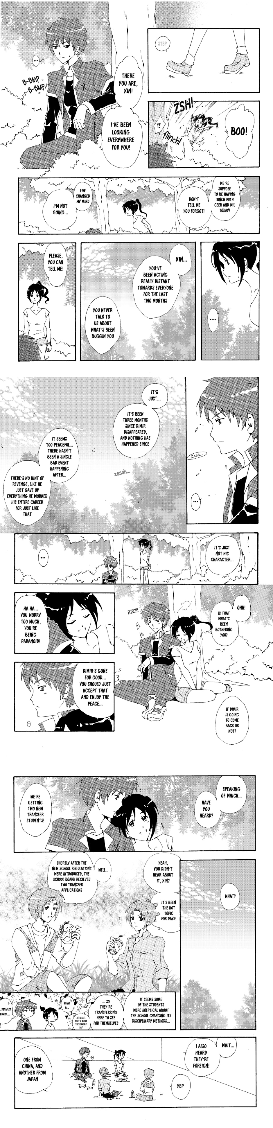 As the students finally relax in their new environment, XIN is unable to due to his paranoia about Dimir returning. To help him relax, Zumi tells him the news of transfer students coming to the school!
