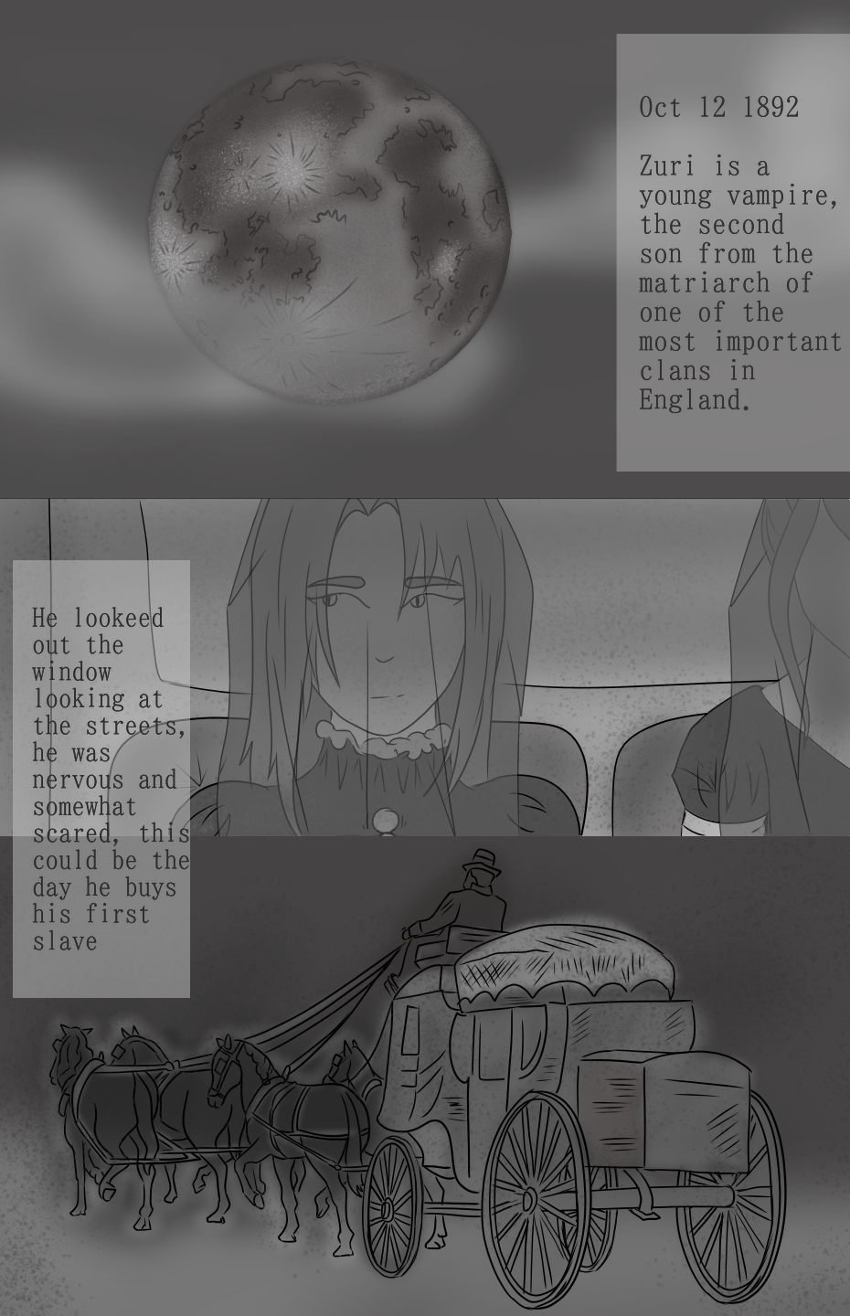 Zuri was inside a carriage drawn by 4 horses. His mother had forced him out of the mansion that day to attend an auction with her.