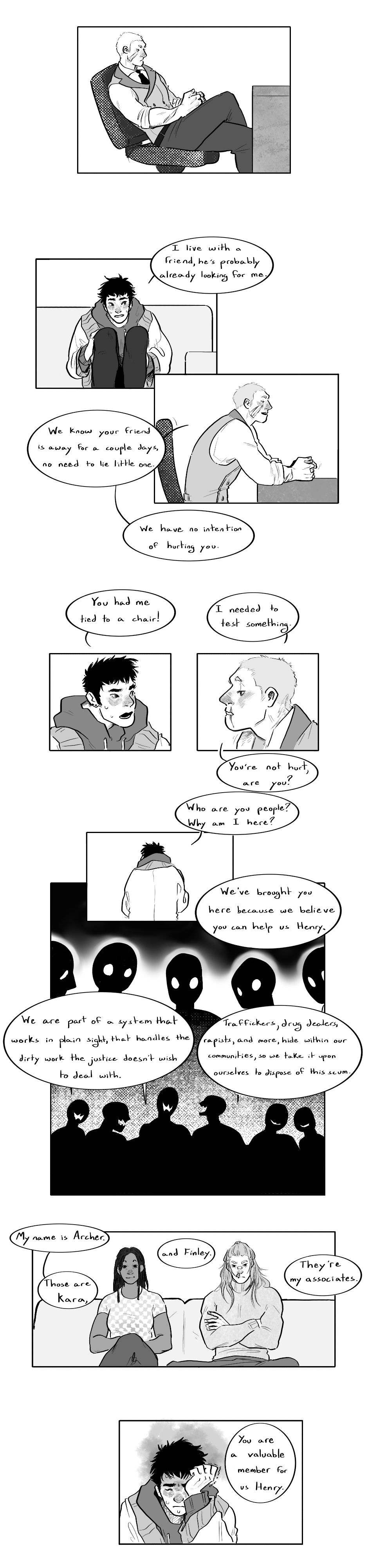 A story revolving around childhood friends Henry and Samuel, now each respectively living out their days in a big city as an anatomy art professor and a police force captain. While Sam frustratingly chases after a serial killer's shadow, certain events begin to reveal thinly-veiled secrets between these two friends, and it may turn out that some secrets would've been better off staying hidden from plain sight.