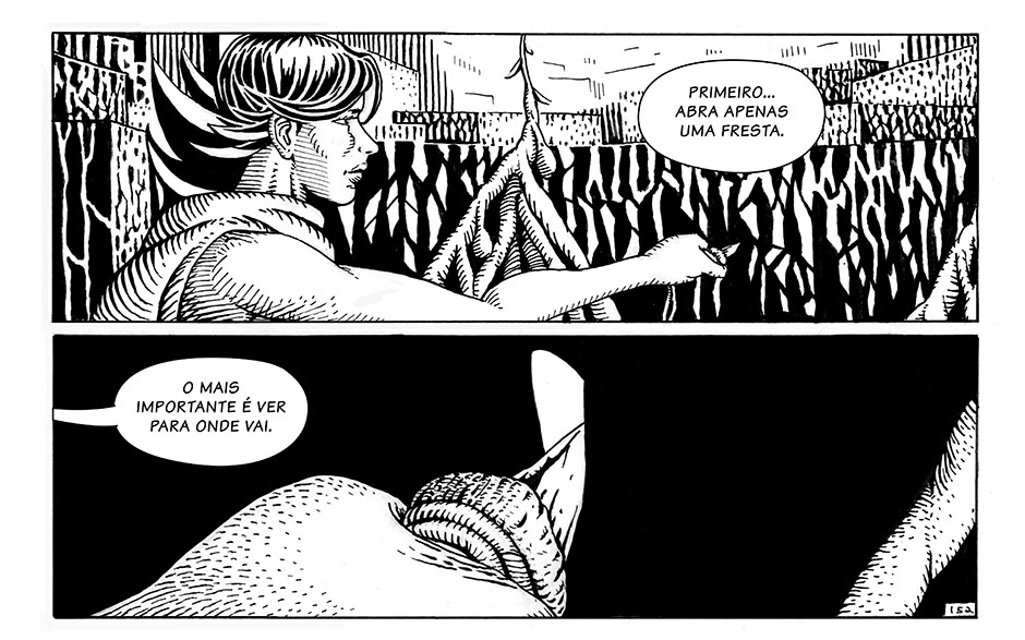Rod e Ama, finalmente, atravessam o portal. (fim do volume 1)