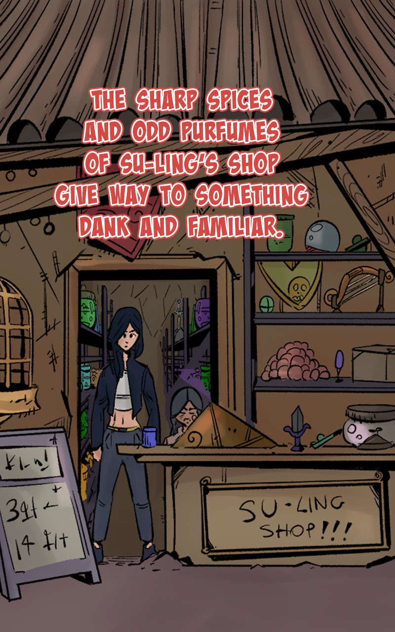 Summer enters the Undercity, meeting Su-ling and passing through the shadow store to the streets beyond.