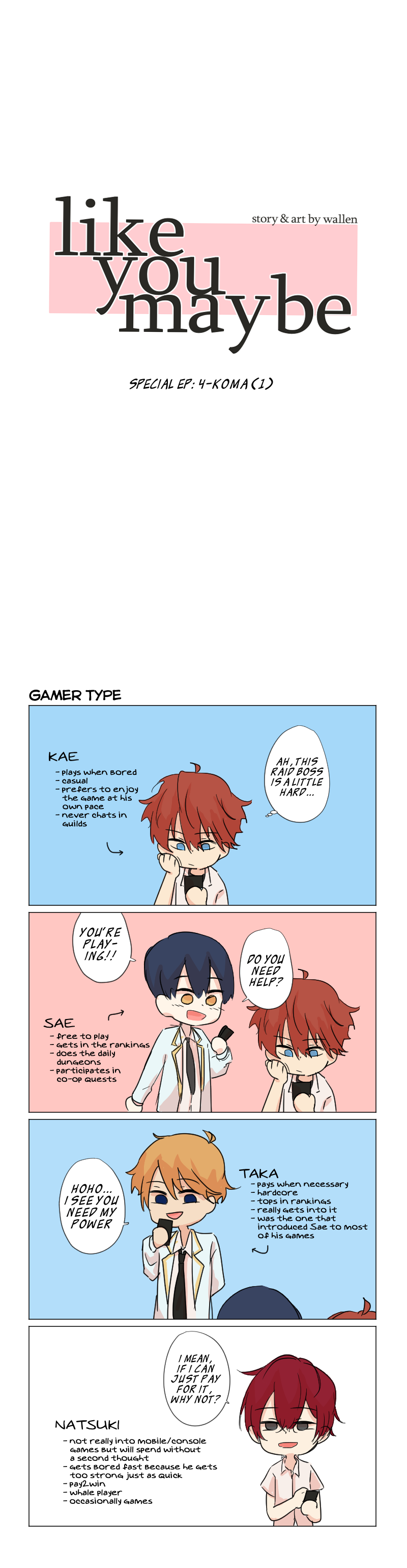 Thank you so much for 250 subs! >< I was planning to put the 10k q&a ep here but I wasn't sure if it was good idea since the screenshots were from webtoon ww (Natsuki was mentioned there for the first time) AAA that said, I hope you'll look forward to the rest of Kae and Sae's story! Stay safe!