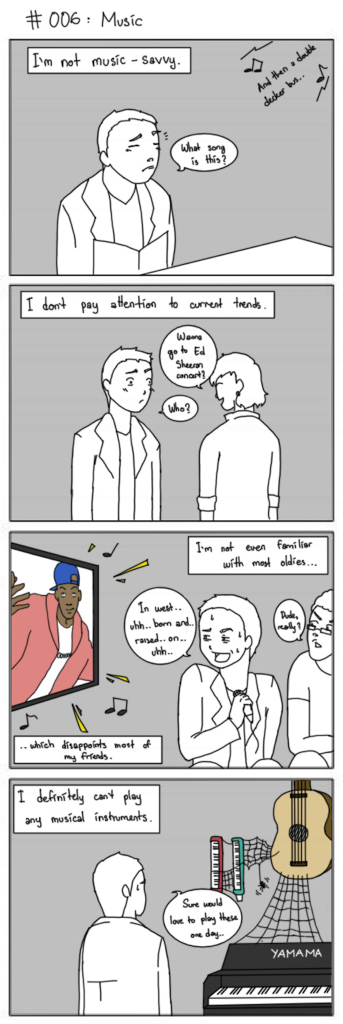 Music is truly my weakness, and I haven't really updated my playlist much since I graduated high school! It's embarrassing for me to admit this, but my playlist is filled with anime and video game soundtracks. I have two antique Hohner melodicas that I would very much like to play, but... I can't even read a music sheet. Someone teach me! What is the one thing that everyone seems to be good at but you're not?