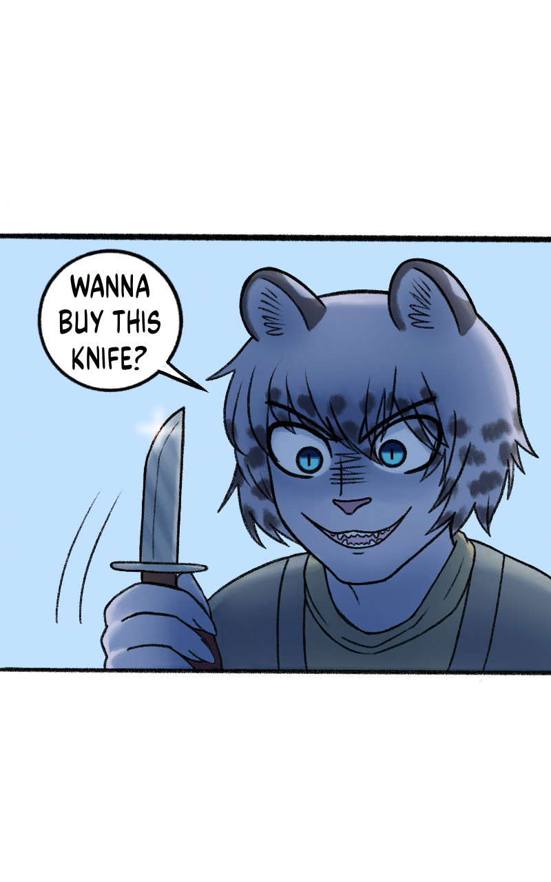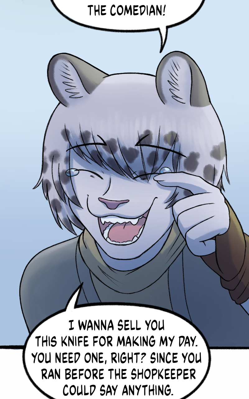 #shounen #adventure #weekly #knife #Fantasy #laughing_and_crying #snow_leopard #furry #cat_boy #animal_man