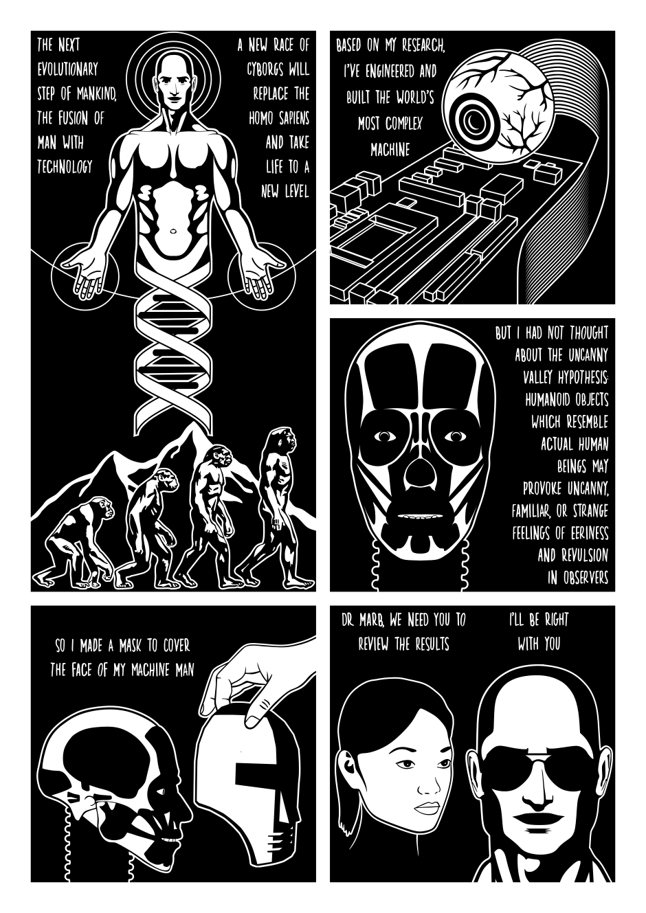 A man--who is a chemist and inventor suffering from liver cancer--is dying in a hospital. His only visitor is a transhumanoid robot, one that he had once invented. The robot lends him his face, a sort of mask that when he wears, he finds his way back to his old superpowers. Large parts of the world population have already been killed by a pandemic. Now, there is also a threat of nuclear war. A desperate fight for humanity begins...