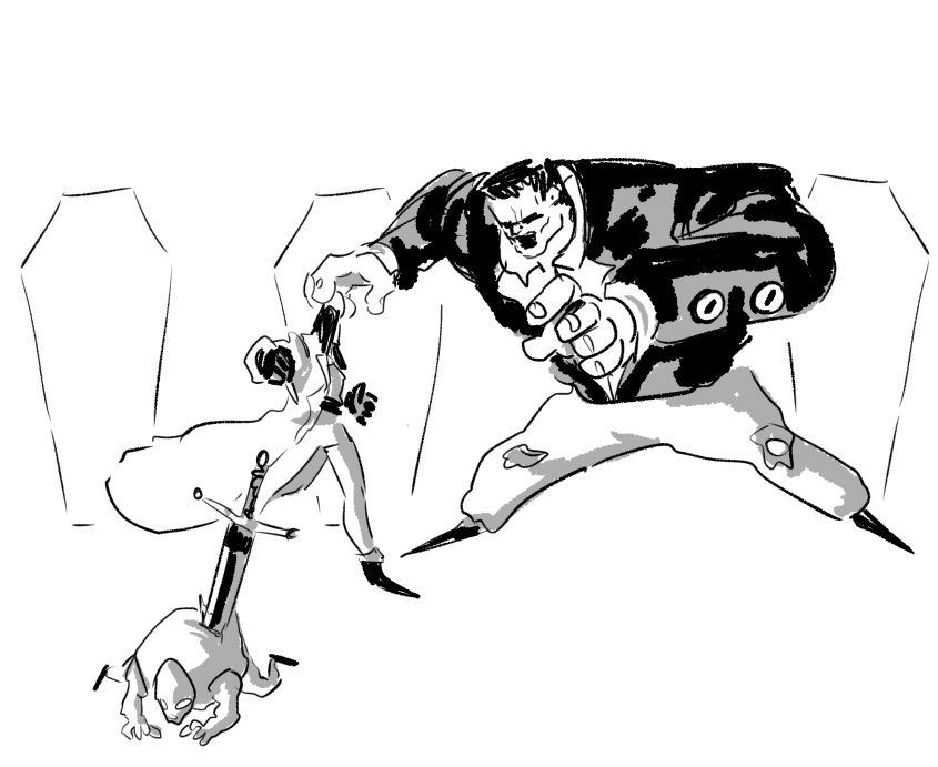 Um caçador de vampiros invade o castelo de um vampiro maligno.
