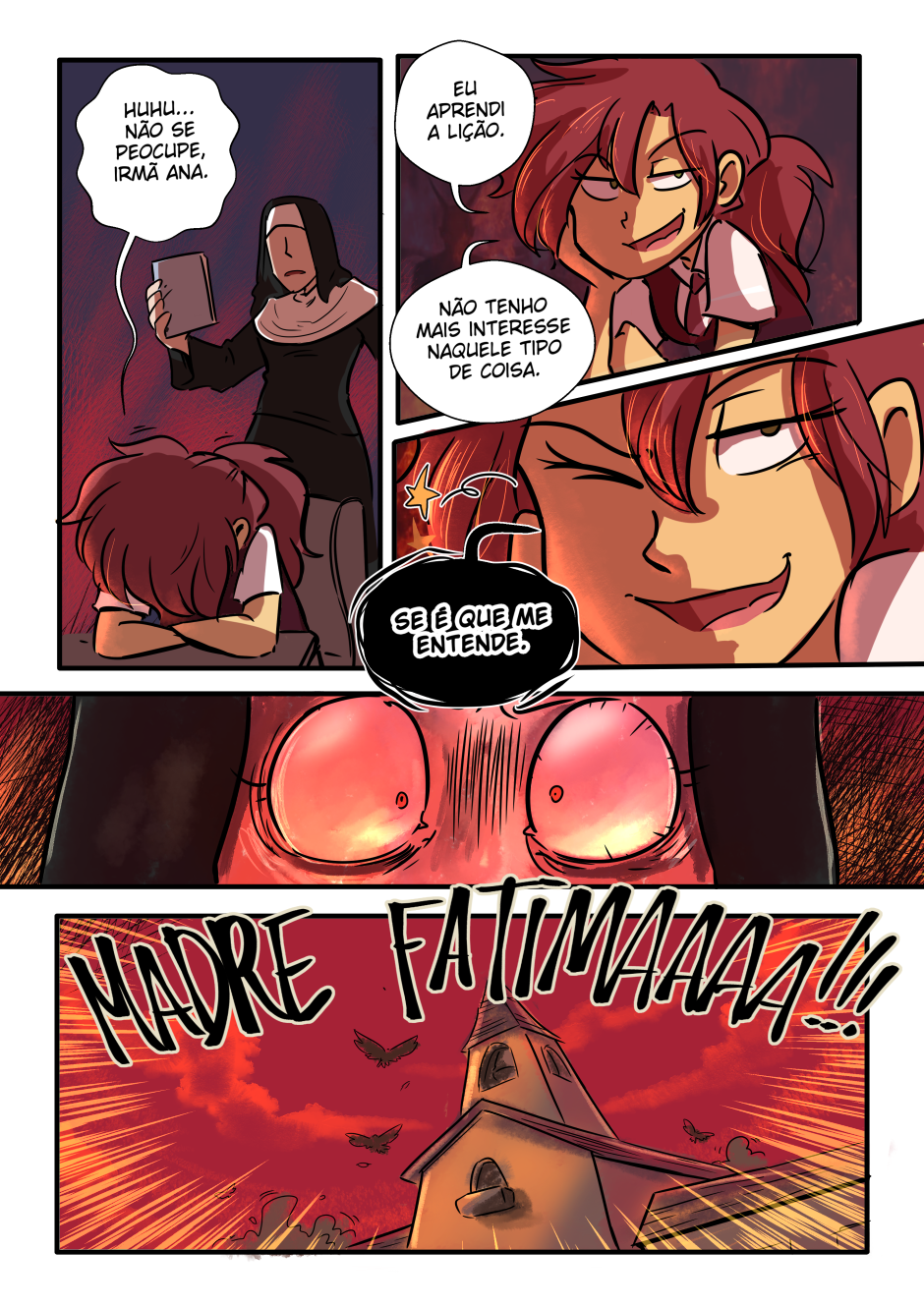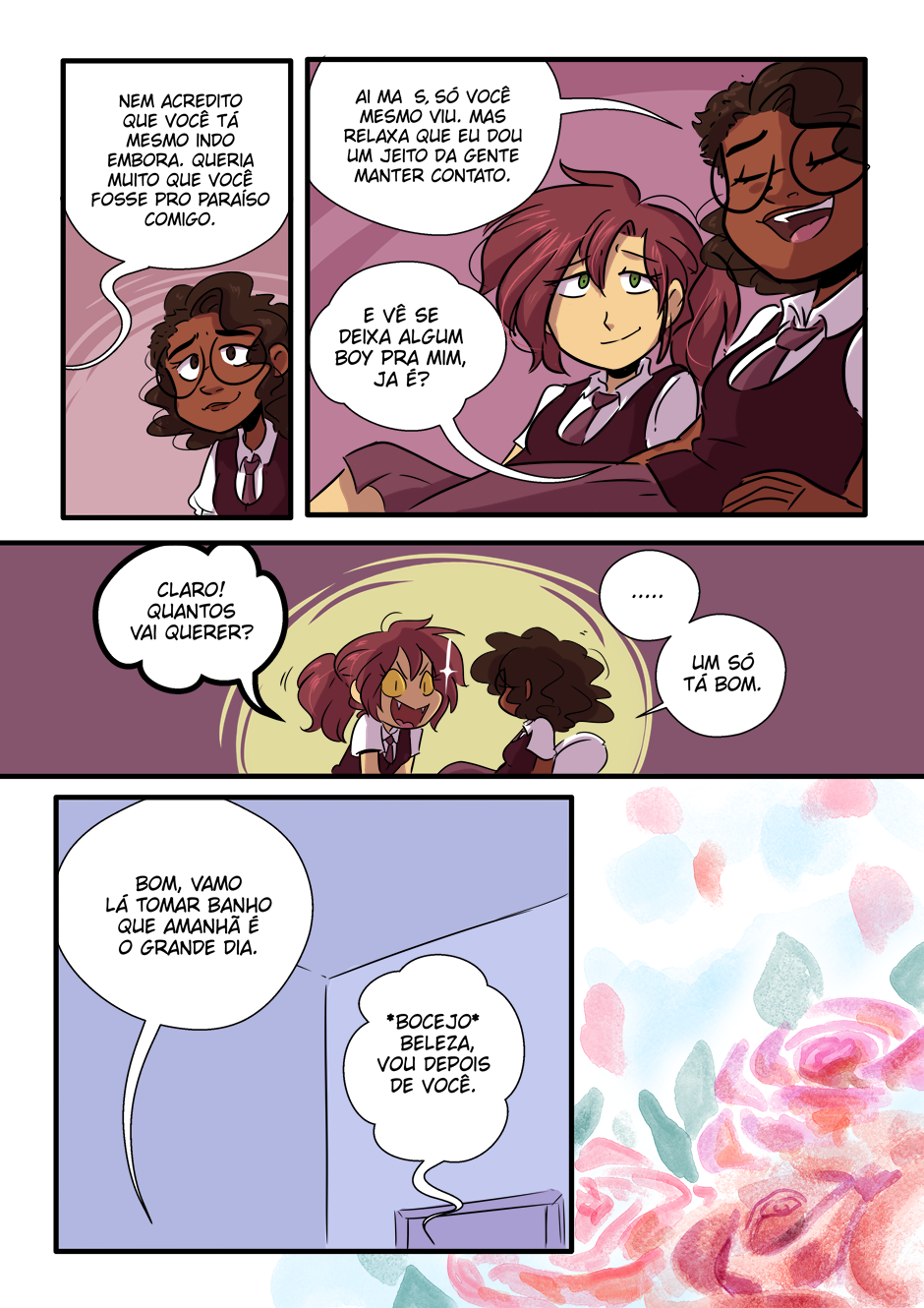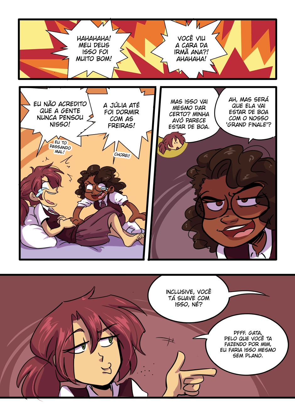 Caramba como eu 'tô amando a pintura do ambiente que muda de acordo com o momento, dando mais ênfase aos sentimentos que os quadrinhos propõe.