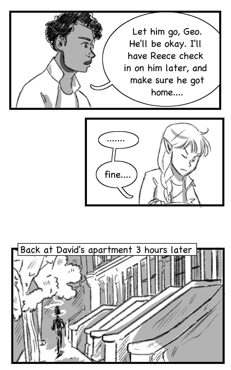 Angry coffee bean (David) can see ghosts, and talk to them too, though he'd much rather be wallowing in bed. Being a consultant for a firm of supernatural beings that hunt other supernatural beings doesn't really help him avoid talking to the recently departed either. Maybe if newbie Hunter and recently turned vampire Geo would just leave him alone, he could struggle with his life in peace.