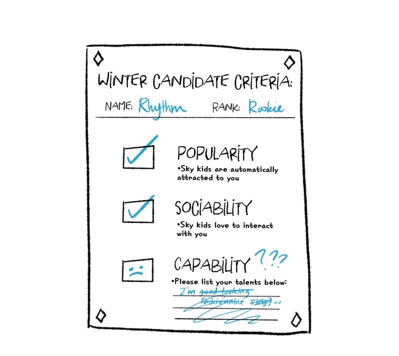 Ms. Flow, a rookie spirit, begins her first work under the charming Winter spirit, Mr. Rhythm. She will do all she can to help the one she secretly admires. But the question is, who will help her one-sided love? This is a mini series based off of Sky: Children of the Light