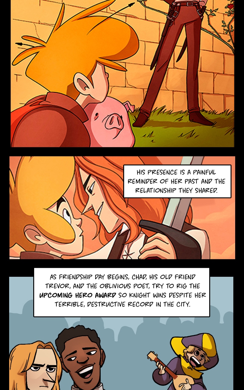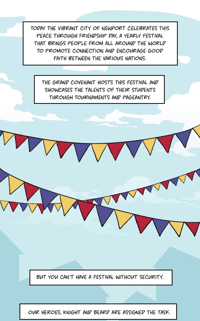 We're back! Over the course of the last year and a half or so, we've fleshed out Knight & Beard's world to an extent that honestly surprised us. The worldbuilding we did severely delayed the upcoming chapter and we regret holding things up for so long, but the changes needed to happen. We're so excited about what's coming next and we hope you are too.