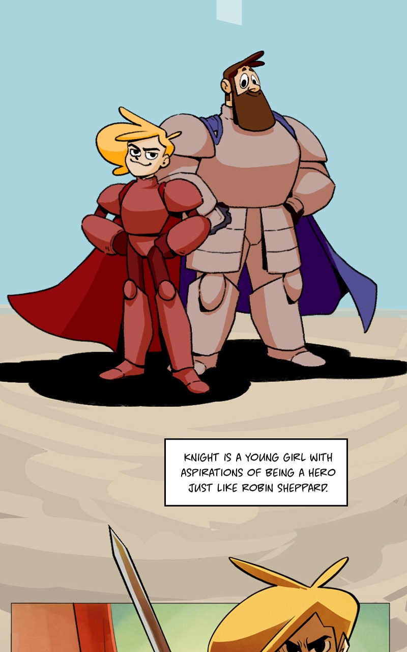 Knight and Beard is a buddy comedy set in the medieval times. Knight is an unruly noblewoman who dreams of becoming a hero, but her privileged upbringing hinders her battle. Beard, on the other hand, is a man with the build of a warrior, but a gentle and loving soul.