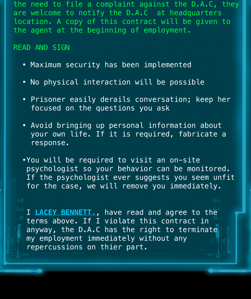 Every interrogator that has spoken to Adeline has mysteriously died. But Lacey Bennett; the newest interrogator assigned to this mass murder case seems to have caught Adeline's interest. Lacey expects a confession, but she quickly realizes she's getting more than she bargained for.