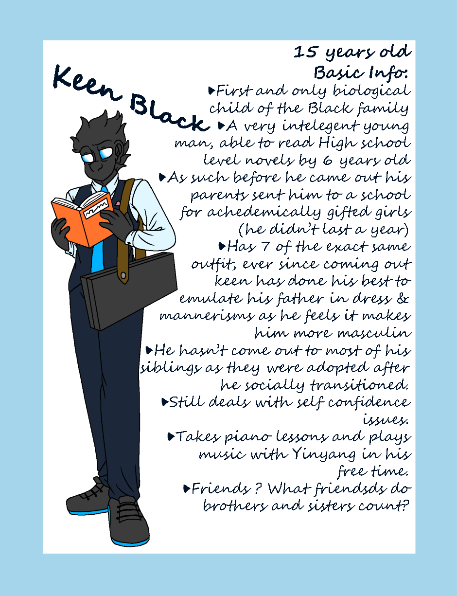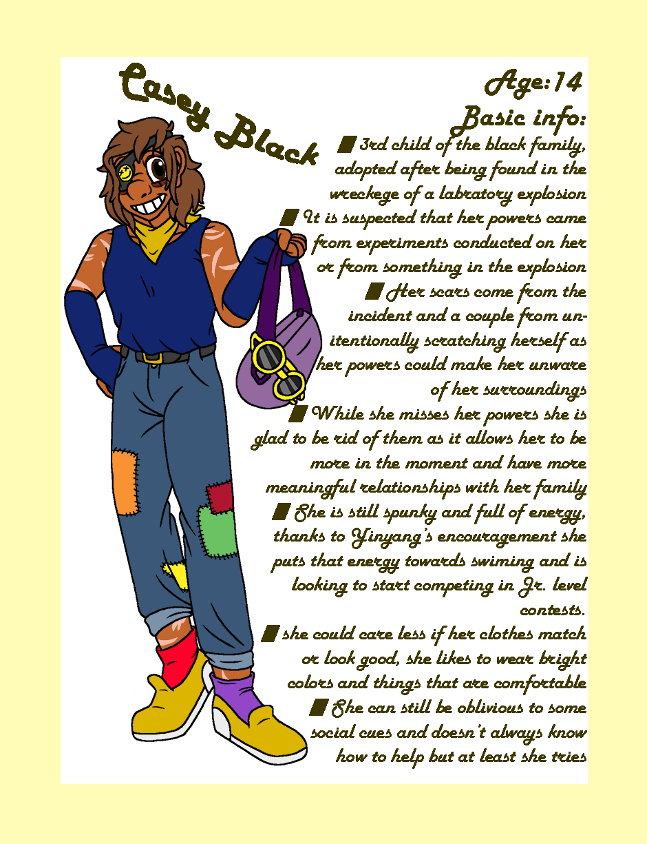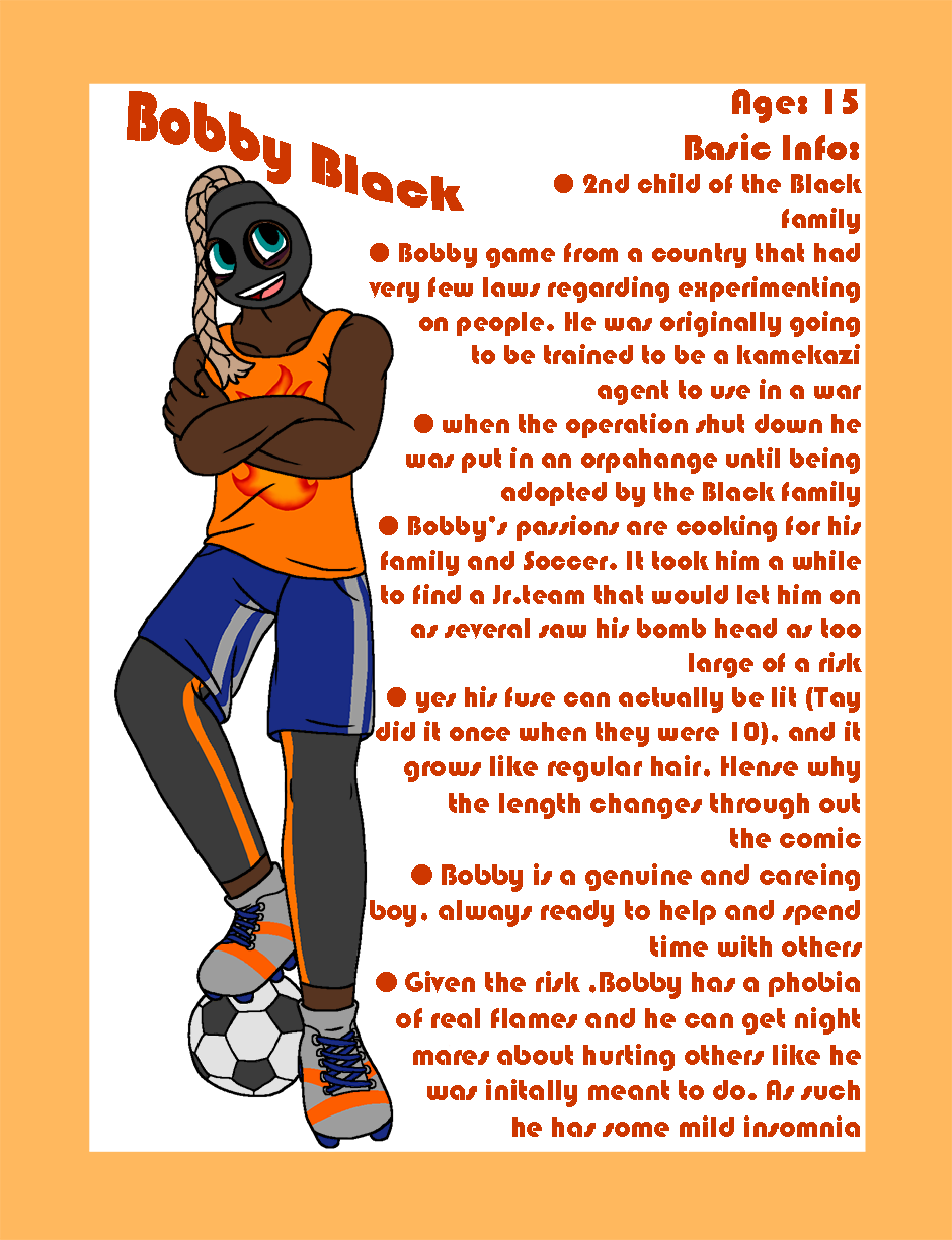 WELL this has been a long time coming. some of the info of the original characters has either been retconned or is outdated so its about time I gave y'all some updated character Bios in the style of the rest of my comic! Hope you enjoy!
