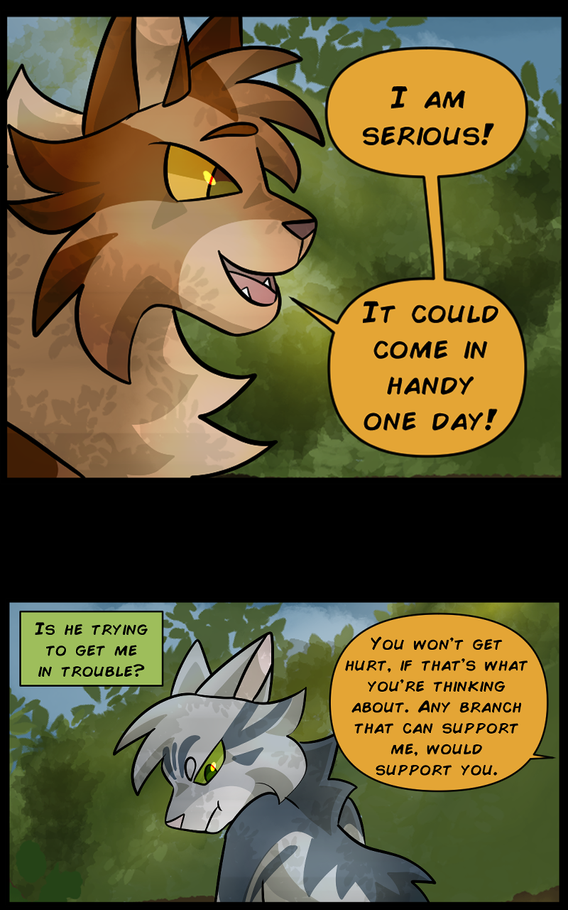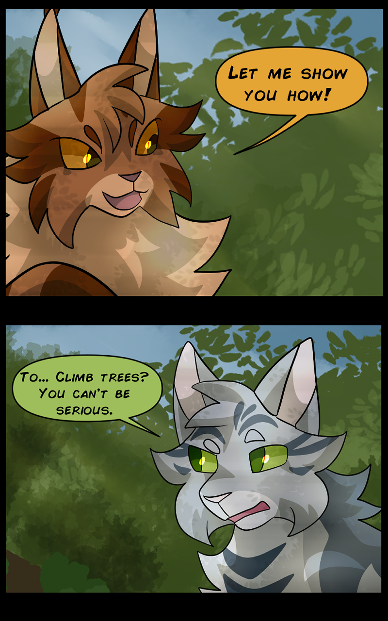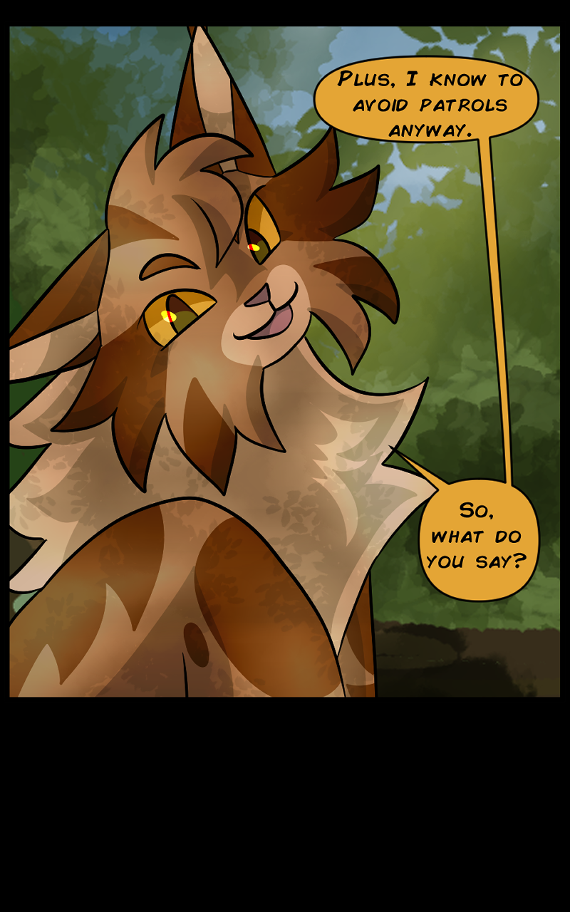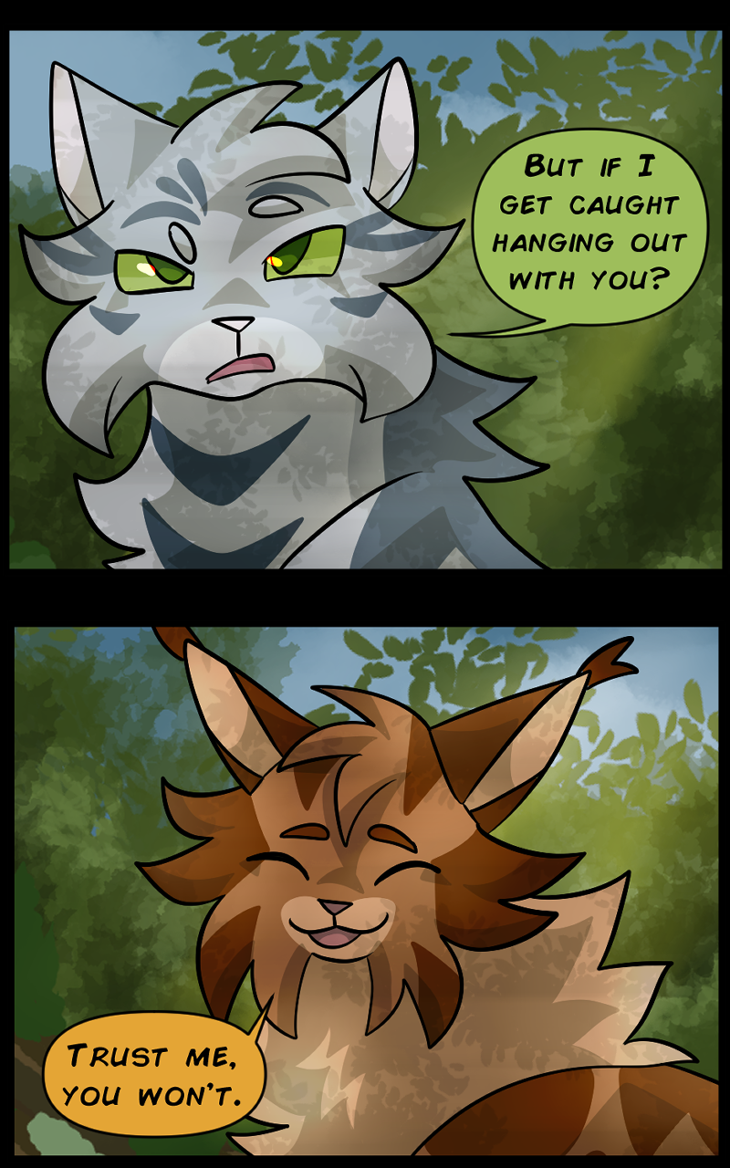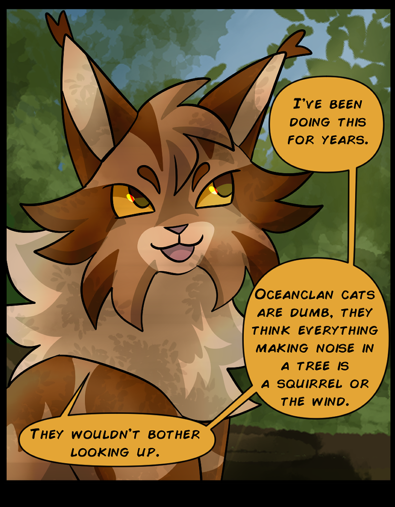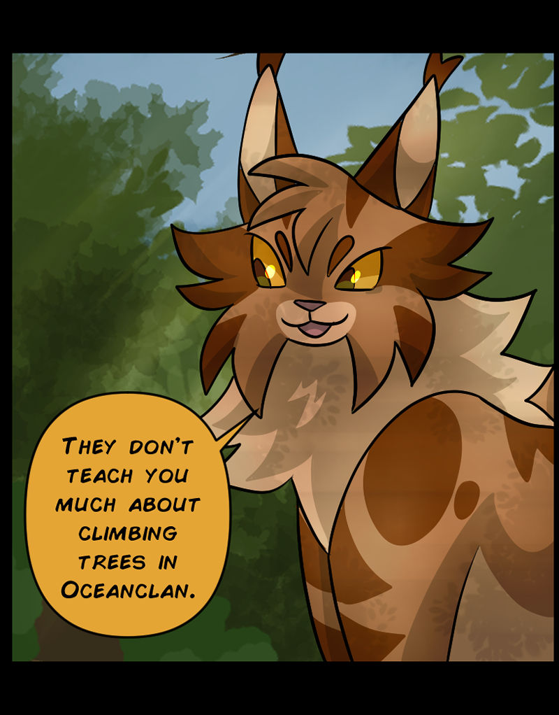 There are two clans in this setting, Oceanclan and Treeclan. Oceanclan lives near the beach, and Treeclan lives in the woods behind them. The two clans have had high tensions for many years, two new leaders made a pact for peace but issues start arising and reasons to fight keep appearing. Fishpaw is a warrior apprentice during this time, and she has her own personal struggles to deal with. Her destiny leads her down a dark path and and when a strong force of evil takes control, will Fishpaw and her friends come out on top... or will they perish?