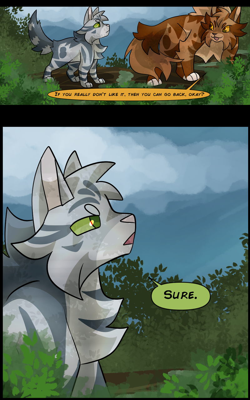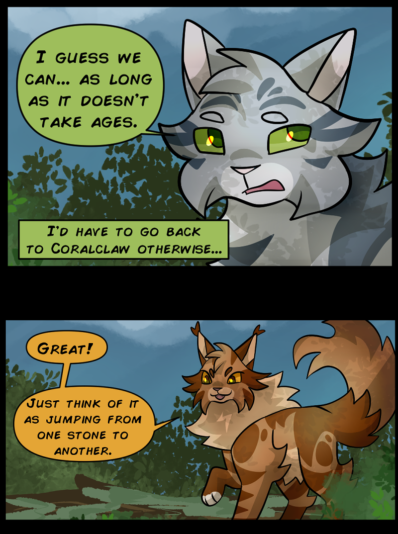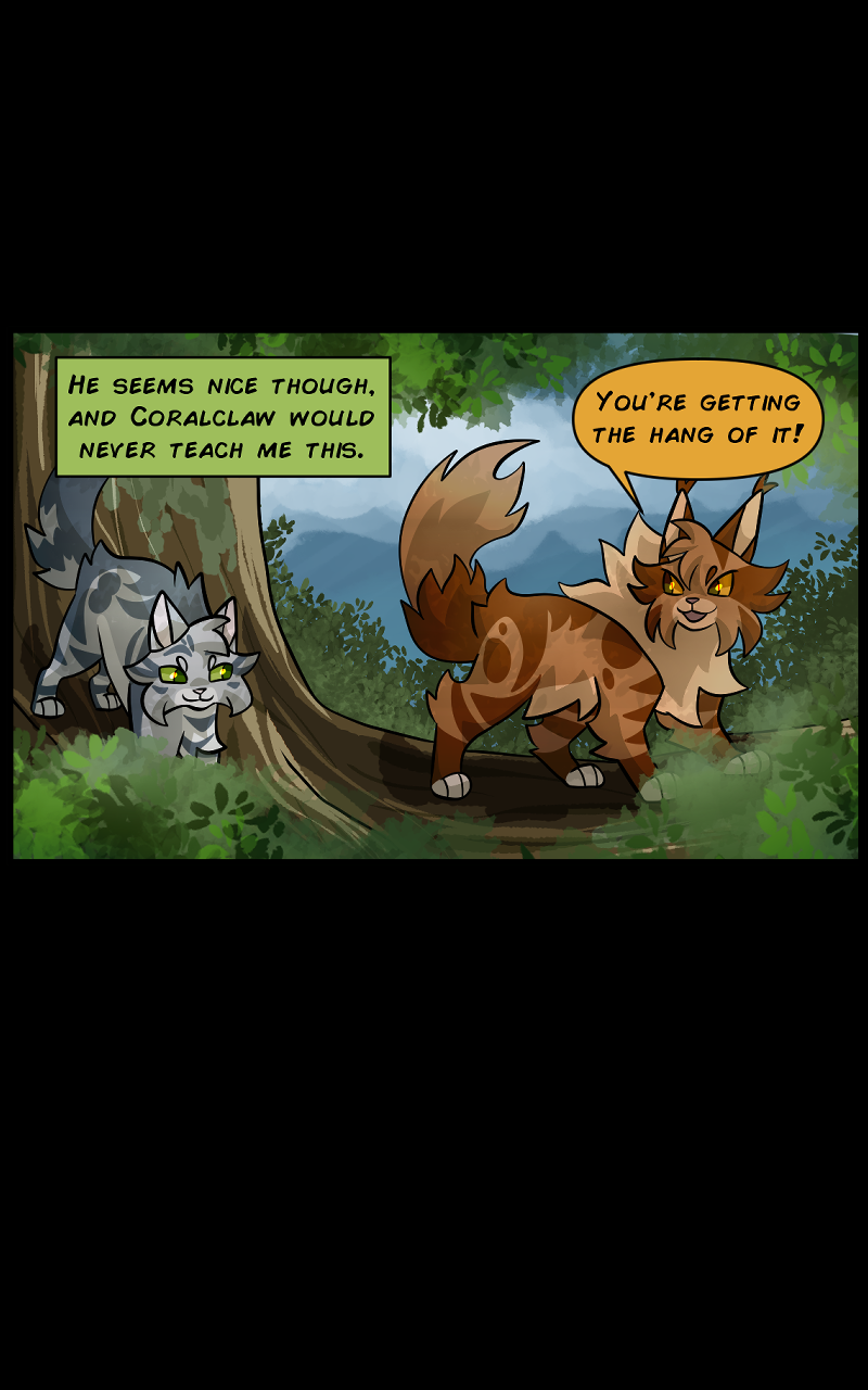 There are two clans in this setting, Oceanclan and Treeclan. Oceanclan lives near the beach, and Treeclan lives in the woods behind them. The two clans have had high tensions for many years, two new leaders made a pact for peace but issues start arising and reasons to fight keep appearing. Fishpaw is a warrior apprentice during this time, and she has her own personal struggles to deal with. Her destiny leads her down a dark path and and when a strong force of evil takes control, will Fishpaw and her friends come out on top... or will they perish?